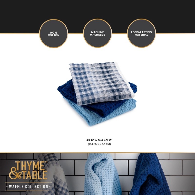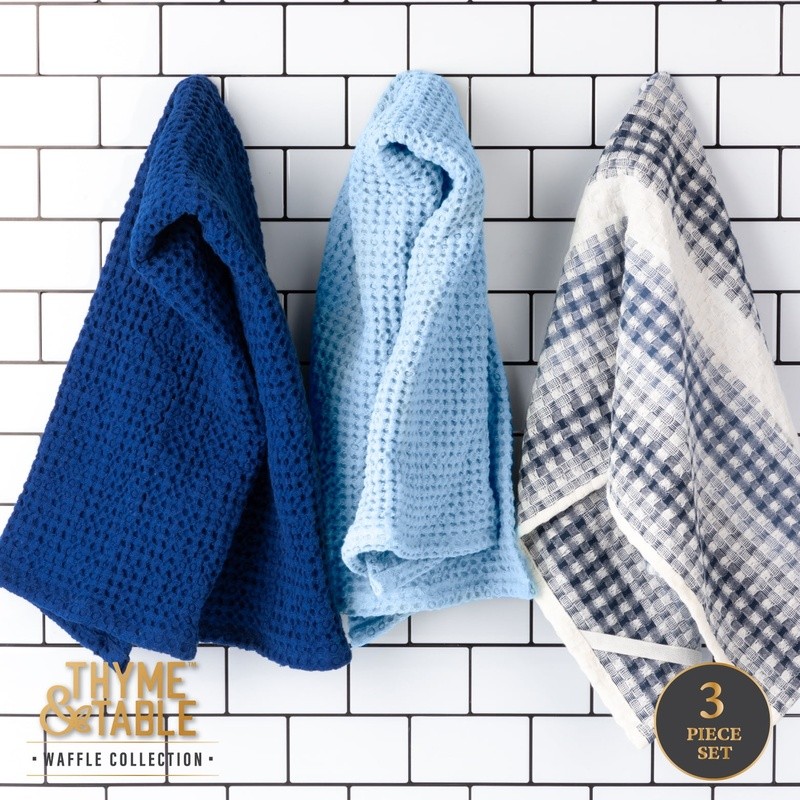 You may also like Diatomaceous Dish Drying Mat Food Safe Absorbent Rapid Drying Space Saving New 40.95 USD 43.1 USD Free shipping 5% off Kitchen Towels 4 Pack Ultra Absorbent Durable Machine Washable Crosshatch New 20.5 USD 21.58 USD Free shipping 5% off Durable Kitchen Towels 4 Pack Ultra Absorbent Machine Washable Decorative Towels 20.5 USD 21.58 USD Free shipping 5% off Ultra Absorbent Bar Mop Kitchen Towels 4*3 Pack Soft Cotton Machine Washable New 33.99 USD 35.78 USD Free shipping 5% off Yellow Rooster Decorative Dish Drying Mat Kitchen Water Absorbent Foam 14x21 New 26.33 USD 27.72 USD Free shipping 5% off Cotton Waffle Kitchen Towels, Blue White, 3-Piece Set is a part of 's Waffle Collection. These kitchen towels are soft and durable and are made of 100% absorbent waffle cotton material. The cotton towels are machine washable and will be long lasting. The towels measure 28" x 16". With a waffle texture, these towels are stylish and functional. Care and use: wash separately before first use with like colors. Use mild detergant and tumble dry low. Do not bleach. Warm iron if needed. 100% Cotton Machine Washable Long-Lasting Material