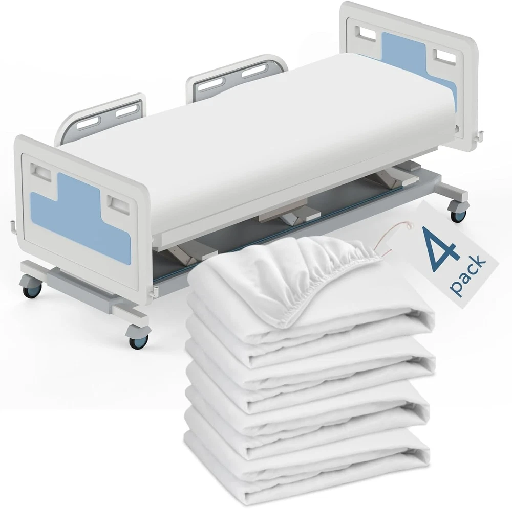 Soft Durable Fitted Hospital Bed Sheets for Home Care and Medical Use in White