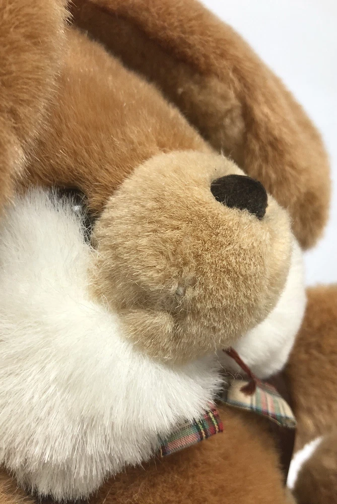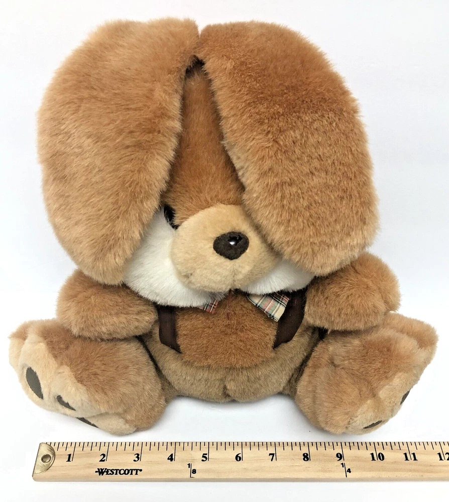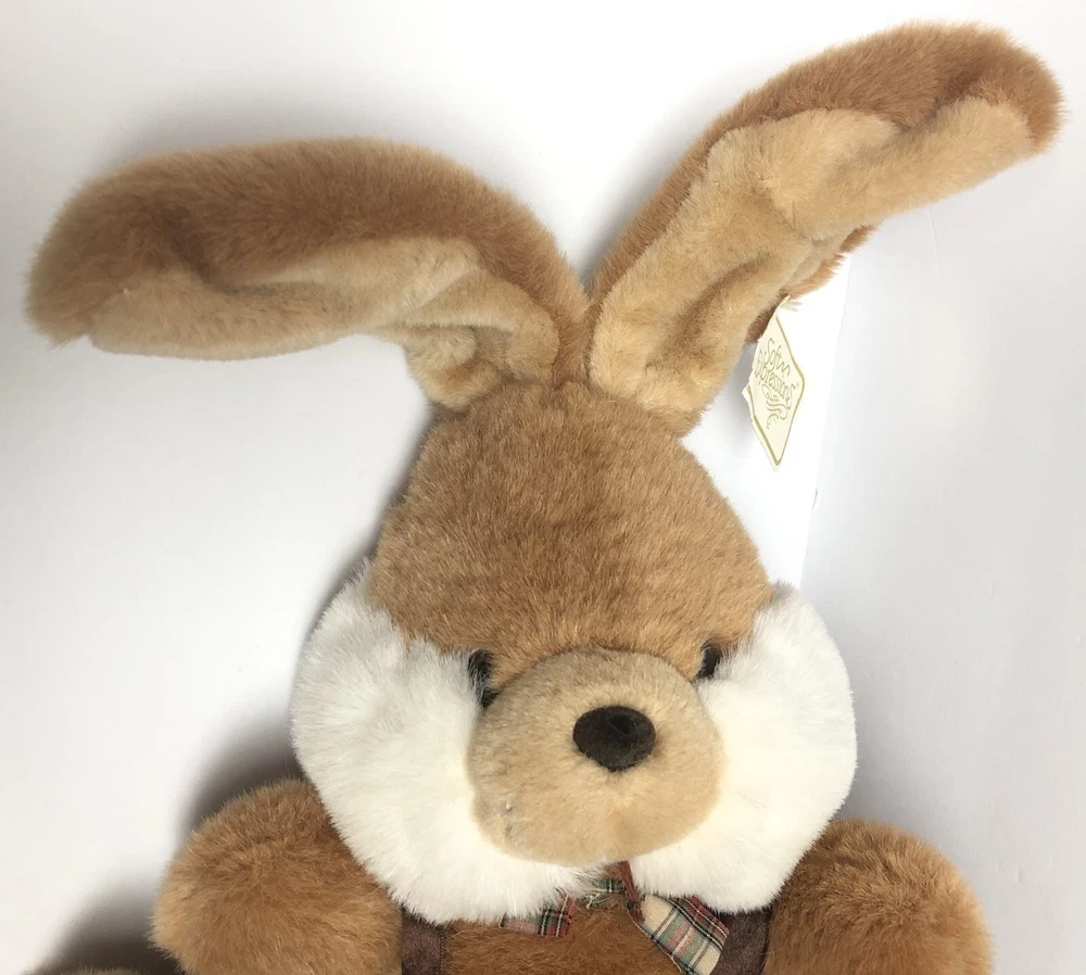 Cute Bunny Rabbit Seems Vintage but not sure Sturdy and old fashioned- huggable but stiffer material-not the really soft squishy material CONDITION Good pre-owned condition with some rubbing off on nose and the tuft fur on one side of his mouth is rough. The nose thread seems to have come loose or stretched to where it is hanging. See pictures for details Please contact us with any questions or concerns. Thanks!
