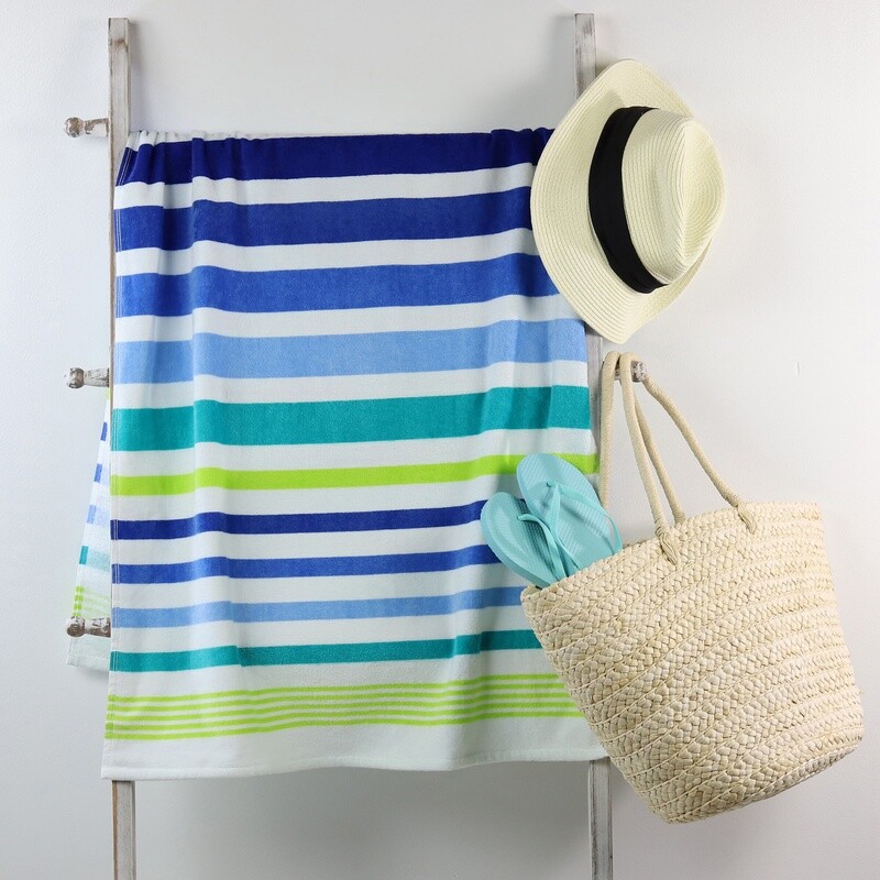 Soft Fast-Dry Cotton Beach Towel Absorbent Multi-Stripe for Pool Lake Travel