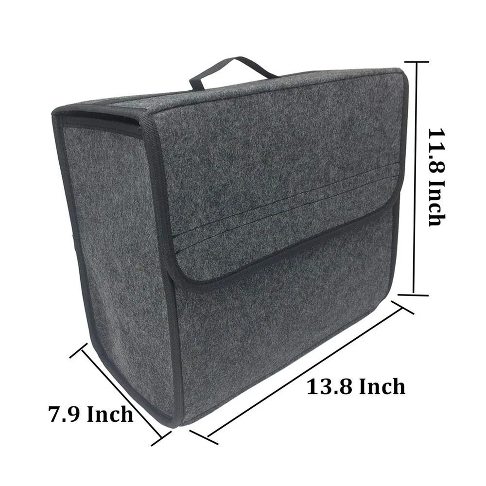 Soft Felt Car Bag Organizer, 13.8x11.8x7.9 Inch, Folding Car Storage Box, Non Slip, Fireproof, Grey Product Details Specific Uses For Product: Car,Car.handle Material: Felt Special Feature: Slip Resistant Color: Grey Brand: BUENNUS Product Dimensions: 7.9"D x 13.8"W x 7.9"H Shape: Rectangular Number of Items: 1 UPC Manufacturer: BUENNUS Specific Uses For Product: Car,Car.handle Material: Felt Special Feature: Slip Resistant Color: Grey Brand: BUENNUS Product Dimensions: 7.9"D x 13.8"W x 7.9"H Shape: Rectangular Number of Items: 1 UPC: 631384626816 Manufacturer: BUENNUS Part Number: BUENNUS106GRAYSI Item Weight: 11.7 ounces Item model number: BUENNUS106GRAYSI Item Package Quantity: 1 Special Features: Slip Resistant Batteries Included?: No Batteries Required?: No Date First Available: July 29, 2019 Capacity - 13.8x11.8x7.9 inch (35x30x20cm).Spacious enough for you to hold your fire extinguisher,repair tools,toys,groceries and other articles. Non Slip - The back and bottom are both equipped with hook & loop.This design makes it easy to be fixed on the surface of the side and floor of your trunk. Convenient Handle - The handle on the top makes it convenient to move in and out of your car.Handle it out anytime or anywhere. Easy to Clean - Felt material is very easy to clean.Gentle hand washing with water.No need brush,washing powder,or other chemicals. Why do we choose felt as the material?1. Compared to cotton,it’s fibrous,tough,silky,soft and also has a cotton touch,and it’s better to keep a good shape.Odorless,not easy to loose,good wear resistance.2. It’s very environment friendly and close to nature.Can be effectively degraded and entered the next environmental cycle in a non-toxic form.3. Can prevent the burning of combustibles.If it’s on fire,use it to cover the fire so that the fire will not spread.A good choice for both organizing and your car safety.Capacity13.8x11.8x7.9 inch( 35x30x20cm )Package Content1 piece of BUENNUS felt car trunk organizer