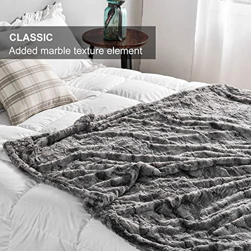 1. This blanket is amazingly soft and so cozy—perfect for snuggling on the couch or bed. The faux fur is plush on both sides, and the marbled gray color looks elegant. It’s thick, warm, and great for gifting. Fast shipping too! Highly recommend!