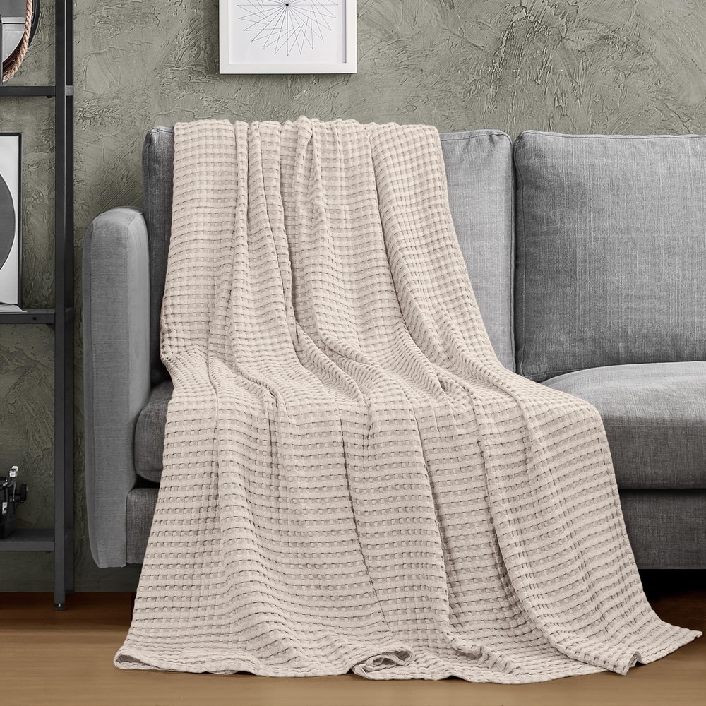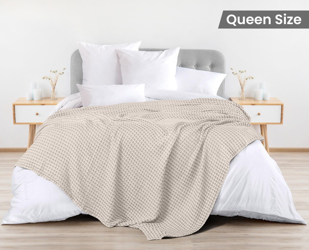 Soft Khaki 100% Cotton Waffle Blanket 300 GSM Queen Size 90x90 Inch Lightweight Comfort