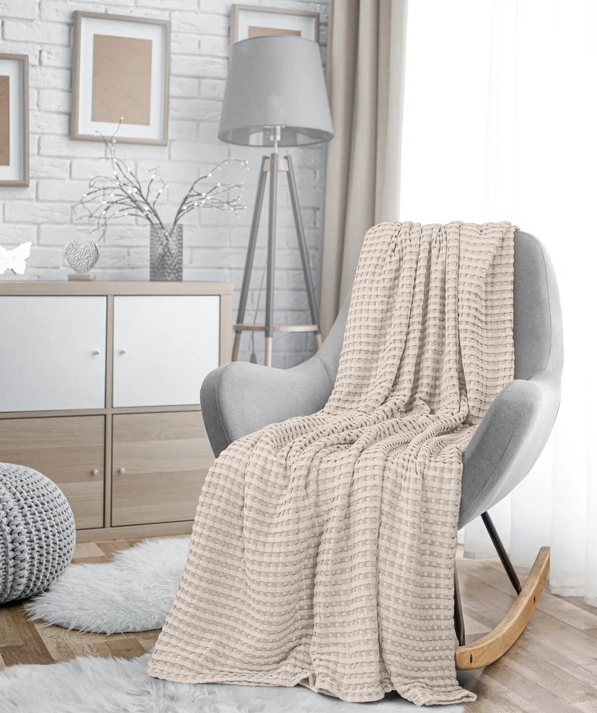 Waffle Weave – Skillfully constructed and neatly woven with a waffle weave texture, available in Queen, King, Twin Big, Throw and Full size is perfect for your comfort. The waffle weave pattern gives off a plush yet smooth feel. Add this layer of a cozy blanket to your bedding for a soothing retreat while enhancing the décor of the room. Quality Cotton Material – The waffle weave blanket is made of 100% cotton, creating a lavish experience for you and your family. When you drape it over yourself, on the bed or the couch, you will feel that it’s lightweight and allows breathability; providing a peaceful sleep at night. Solid Craftmanship – Featuring ring spun technology, it is expertly designed with self-binding edging that makes these blankets stronger and softer. Hence, the finishing of our waffle weave blankets is flawless and thorough. All-Season Blanket – A bedding essential in day-to-day life, this blanket will keep you warm in winters and cool on a hot summer night. This blanket has a versatile usage apart from bed or couch layering. You can use it outdoors for a picnic, traveling, while resting at the office, or carrying it in your cars. Care Instructions – The waffle weave blankets can be washed easily, as the fabric is cotton. There is no need to use harsh chemicals. They can be tumble dried or hung up to dry. To obtain the best results, it is recommended to wash them separately on first use.