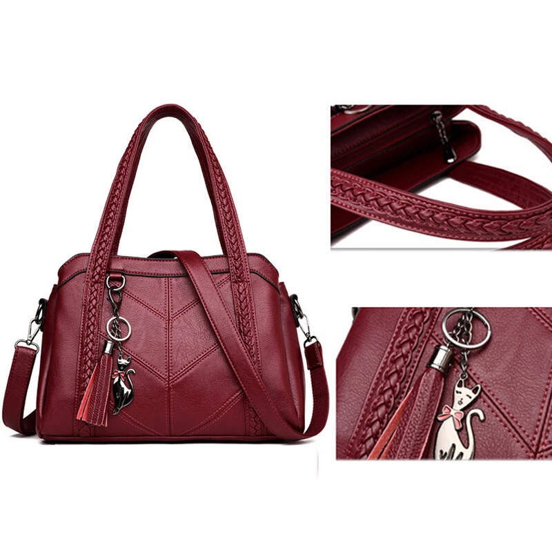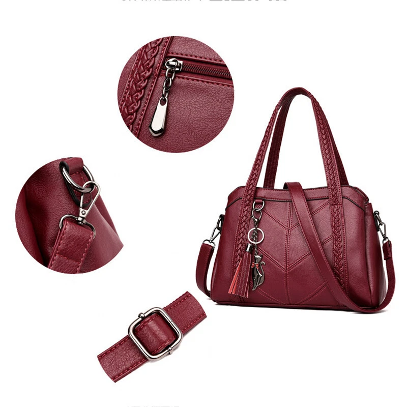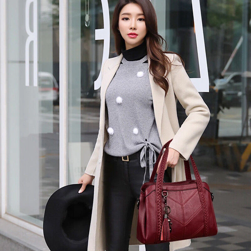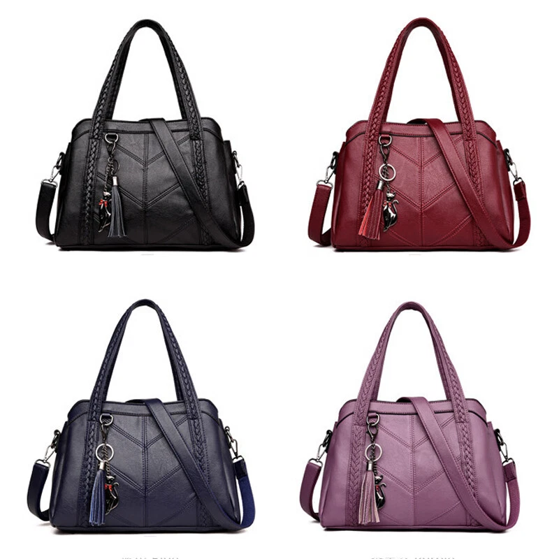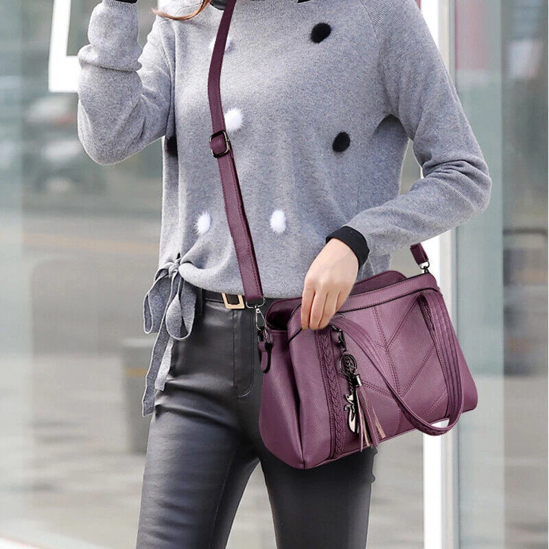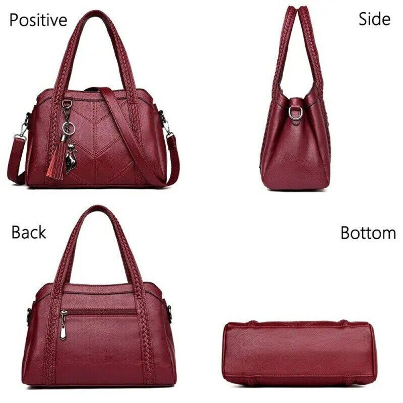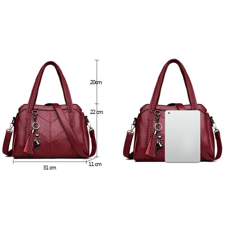 1.Unique and Beautiful Design. These soft leather bags are classy, functional, elegant and lightweight. The design is cute and trendy, with many compliments wherever you go, You will love this bag! 2.Superior Material. These ladies handbags are well made with soft PU leather and metal hardware, smooth to touch, without any peculiar smell. 3.They have great stitching and excellent workmanship. 4.Roomy Space. These stylish bags are multi-pocket / zippers providing sufficient space and options for phone, wallet, bills, glasses case and all your essentials. 5.These shoulder bags have sufficient shoulder strap length and can be adjusted freely according to your need. Material: PU, Polyester Style: Shoulder, Crossbody, Pare Color: wine red/black/blue/purple Size: 31*11*22 cm/12.2*4.33*8.66inch Package includes: 1 X Shoulder Bag On 25-Oct-2024 at 11:48:44 BST, seller added the following information: