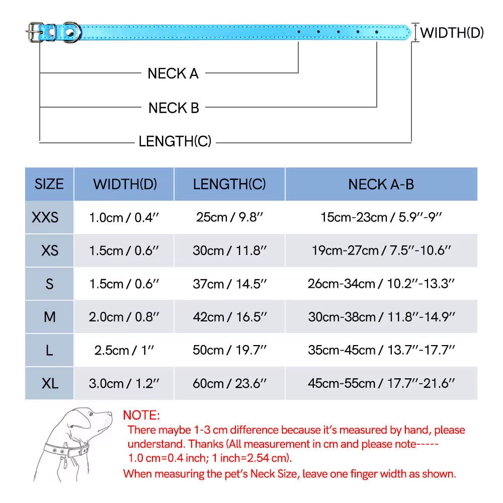 Material :PU Imitation Leather Charm : Standard Dog/Cat Collar Buckle : Alloy buckle Applicable Dog Breed: Small Dogs/Cats, Medium Dogs/Cats Color: Red, Pink, Burgundy, Blue, Navy Blue, Lake Blue, Light Blue, Purple, Green, Brown, Orange, Gold, Khaki, Yellow, Black, White.