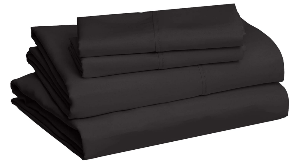 Amazon Basics Lightweight Super Soft Easy Care Microfiber Comfortable Fits Well 4-Piece Bed Sheet Set with 14-Inch Deep Pockets, Queen, Black, Solid Size Queen Material Microfiber Color Black Pattern Solid Brand Amazon Basics About this item 100% Polyester Microfiber Imported SOFT AND COZY: Experience ultra-soft comfort with our 120 GSM brushed microfiber sheet set ALL-SEASON COMFORT: Enjoy breathable, all-season comfort with our 100% polyester sheet sets ELEGANT STYLE: Enhance your bedroom atmosphere with the classic pattern of this bed sheet set EASY CARE: These 120 GSM brushed microfiber sheets are machine washable, dryer safe, and wrinkle and shrink resistant Certified MADE IN GREEN by OEKO-TEX, which means that products are tested for harmful substances and made in safer workplaces with reduced environmental impacts . We offer FREE shipping on all orders! . We ship within Five business days of payment, usually sooner. . We use a selection of shipping services such as UPS, FedEx, USPS etc. . We only ship to the lower 48 states, no APO/FPO addresses or PO Boxes allowed. . Local pickups and combined shipping options are not provided at this time. . Your satisfaction is a wonderful reward for our efforts. Please assist us by leaving a positive review if you feel pleased with our service. . In the event that you encounter any difficulties related to your order, please do not hesitate to reach out to us directly through the Messaging system on the Ebay platform. Kindly consider opening a COMPLAINT or a RETURN REQUEST as a last resort, only after all other possible measures have been attempted and we have been unable to provide you with assistance. . We will get in touch with you within 24 hours and make every effort to ensure your satisfaction. . Please rest assured of our service quality.