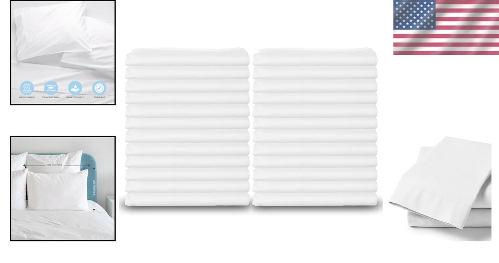 Soft & Lightweight Standard Pillow Covers Set of 24 - Perfect for Home & Travel ‹ › ‹ › ‹ › ‹ › ‹ › ‹ › ‹ › ‹ › ‹ › Soft & Lightweight Standard Pillow Covers - Set of 24 Transform your sleeping experience with this exquisite set of soft and lightweight standard pillow covers, perfect for both home and travel. Elegant Composition: Crafted from a luxurious cotton-poly blend: 60% cotton and 40% polyester T-200 Thread Count for long-lasting durability and an indulgent feel Standard size: 20 X 30 inches with a refined 3" hem Supplied as a generous 24-pack, ensuring you have pillow covers for every need. Skin Care Benefits: Ideal for preventing acne scars and breakouts, offering a gentle touch on your skin. Experience relaxation and comfort, as these covers cradle your head and body in softness. Effortless Care: Designed to endure: holds up to repeated washing without fading or losing quality. Machine washable on cold and tumble dry on low for hassle-free maintenance. Crease-resistant finish ensures your pillowcases emerge smooth and wrinkle-free, eliminating the need for ironing. Versatile Use: Perfectly fits most standard pillows, making them suitable for home, travel, or as decorative accents on sofas. Great for hotels, spas, or creative projects such as embroidery and crafting. Money-Back Guarantee: Your satisfaction is our utmost priority. Backed by a 30-day money-back guarantee, we want you to be 100% happy with our product. Contact us with any questions or concerns, and our dedicated team will be more than delighted to assist you. Indulge in the luxury and comfort of our Soft & Lightweight Standard Pillow Covers. Enjoy a euphoric sleeping experience to awaken refreshed and rejuvenated—try them today and drift off into a blissful slumber like never before! Shipping Free & Fast Shipping - We offer free shipping to most of the USA with a normal delivery time of 3-10 businessdays. However, due to various situations, additional delivery time (up to 3 weeks) may be required for some items. Alternative Carriers - We may use alternative carriers (e.g. USPS, FedEx, UPS, etc.) to ensure your package arrives safely and on time. Due to the use of multiple carriers, we are unable to provide a tracking number automatically. Handling Time - Orders are processed and shipped within 1-5 business days of receiving cleared payment. Shipping Restrictions - Shipping to Alaska, Hawaii, Puerto Rico, Guam, and other US territories may incur shipping charges or delivery restrictions. Please contact us before ordering, or your order can be refunded/cancelled. State Restrictions - There may be restrictions based on your state of purchase. For example, certain items may not be shipped to California due to state regulations. Contact for Tracking Updates - If you require tracking updates or have any concerns about the delivery of your order, please feel free to contact us, and we will be happy to assist you. Return Please see our ebay return policy. We do not accept return on most products. This is to avoid customers mis-using ebay returns. All sales are final. Please be sure to check the return policy listed at the top of the listing. In rare cases, we may accept returns, if the buyer pays both ways shipping and 20% restocking fee. If you are un-sure of return policy of a particular item, please ask before buying. Payment We accept all major credit cards, PayPal, and Apple Pay for your convenience. Your payment information is secure and encrypted to ensure a safe and seamless transaction. Please complete your payment within 3 days of purchase to avoid any delays in shipping. Feedback Your feedback is extremely important to us. We strive to provide the best products and customer service possible. If you are satisfied with your purchase, please take a moment to leave us a positive review. If you have any concerns or issues with your order, please contact us before leaving negative feedback. We are committed to resolving any problems and ensuring your satisfaction. Contact Us If you have any questions or concerns, please feel free to reach out to our customer support team. You can contact us through the eBay messaging system. We are available Monday to Friday, 9:00 am to 5:00 pm EST, and we will do our best to respond to your inquiry within 24 hours. Buy it now and enjoy a pleasant shopping experience! UPC: Not Set Item Width: Not Set Unit Quantity: 24 Material: Percale,Cotton Poly Blend,60% Cotton,40% Polyester Character: Not Set Features: Hypoallergenic,Easy Care,Soft,Lightweight,Crease-resistant,Durable,Non-scratchy Theme: No Theme Care Instructions: Do Not Dryclean,Machine Wash,Do Not Bleach,Tumble Dry Warm Department: Unisex Baby & Toddler,Kids,Teens,Adults Room: Bedroom,Living Room,Hotel,Spa Labels & Certifications: Not Set Brand: Unbranded Size: 20 x 30 in Type: Pillowcase Color: White Pattern: Solid Closure Type: Envelope Character Family: Not Set Item Length: Not Set MPN: Not Set Style: Classic Country/Region of Manufacture: Not Set Shape: Rectangular Thread Count: 200 Product Line: Not Set GSM (Grams per Square Meter): Not Provided Model: Not Set Unit Type: Unit Personalize: Not Set