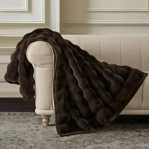 1. This faux rabbit fur throw is unbelievably soft and cozy—perfect for snuggling on the couch or bed. The thick, plush material keeps me warm, and the reversible velvet adds extra comfort. The chocolate color looks elegant, and the quality feels luxurious. Fast shipping and great customer service make this a fantastic purchase!