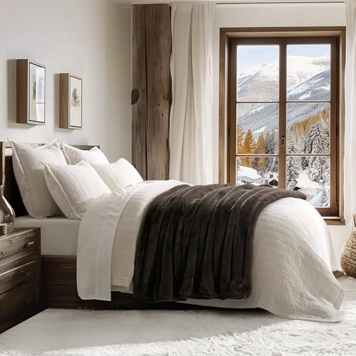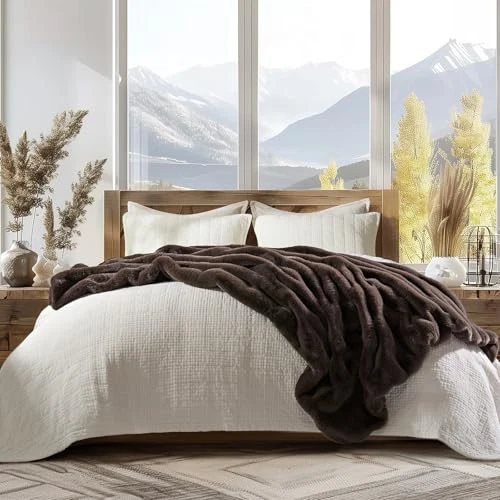 Soft Luxury Faux Rabbit Fur Throw Blanket Cozy Fluffy Channel Couch Cover
