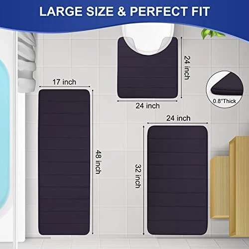 Return Policy Fast Delivery Trusted seller Memory Foam Bathroom Rugs Sets 3 Piece, Extra Thick Soft Absorbent Non Slip, Washable Toilet Shower Bath Mat for Bedroom, Living Room (Dark Grey, U Shape 24” X 24”+24” X 32”+17” X 48”) Product Description 【Super Soft & Maximum Comfort】Our bathroom rug features a high-density memory foam core with super rebound, soothing pressure for luxurious comfort. The ultra-soft microfiber surface feels gentle on bare feet, and the 0.8-inch thick padding protects against cold winter floors. Unlike cheaper gray bathroom rugs, it retains its shape for years without flattening or sticking to your feet. 【Highly Absorbent & Quick-Drying】The memory foam bathroom rugs are made of double-layer microfiber, which absorbs 10 times more water than ordinary bathroom mats and can instantly wick away moisture. The breathable pores of bathroom rug accelerate air circulation and dry quickly, which is perfect for high-humidity bathroom,laundry room and bedroom,living room. Say goodbye to soggy floor mats or musty odors! 【Non-slip and Durable】The back of the bathroom rug set is made of non-slip PVC resin, which has a strong grip and will not move or slide. unlike other bath rugs for bathroom, whose rubber backing tends to wear and peel off after multiple washes, our bathroom rugs sets 3 piece are more sturdy and durable for long-term use with high-quality materials and great workmanship.Prevent from slipping, please make sure the surface under the floor mat is smooth, clean and dry. 【Multi-Purpose Bathroom Rug Set】 Includes three versatile mats: a U-shaped toilet mat 24” X 24” for snug baseboard fit, a shower mat 24” X 32” for cushioned exits, and a vanity mat 17” X 48” to shield floors from splashes. Anti-fray edges minimize tripping hazards, the memory foam bathroom rugs are ideal for bathroom, bedroom,living room, laundry room, hallway, kitchen, etc. 【Machine Washable Bathroom Mat】Short pile design, not easy to accumulate dust or absorb hair, and not easy to tangle with dirt such as dust. Color lock technology prevents fading after washing, the bathroom mat set is very easy to clean, hand wash or machine wash. Backed by a 90-day money-back promise-if you are not satisfied. we'll refund you no questions asked.1-year replacement for structural defects. Shipping Returns Payment Shipping Shipping is FREE to all addresses other than APO/PO boxes in the lower 48 states. All our stock ships from US-based warehouses. Shipped via USPS or UPS (depending on location and package weight) Unless stated otherwise, all orders will ship within 24-72 hours of your payment being processed. Check our feedback to see the great reviews of FAST shipping we offer. Returns Seller does not accept returns Payment We currently accept payment via eBay managed payments only. Once payment is cleared, we will dispatch your shipment within 1-3 business days. Please refer to the "Shipping" tab for more information regarding shipping speed to your destination.
