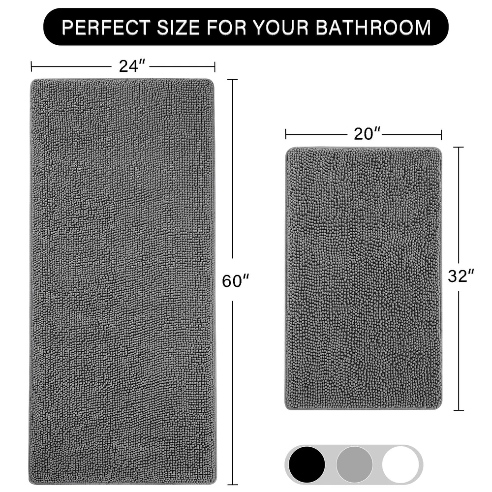 LOCHAS Bathroom Rugs Sets 2 Piece, 20 x 32 Plus 24 x 60 Inches Thick Non Slip Bath Rug Set, Absorbent Soft Chenille Bathroom Rug, Machine Washable Quick Dry Bath Mat for Bathroom Floor, Grey 2 Piece Bathroom Rug Set: Bath rug set includes 20" x 32" and 24" x 60" two sizes Thick and No Shedding: Our 2pc bathroom rug set are made of high quality chenille; You'll feel incredibly soft and fluffy when you step on this thick bath rug; The bathroom mat will not shed hair even when pulled Super Absorbent and Quick Dry: Our bathroom rug runner are super absorbent can absorb water quickly, when you step out of the bathtub or shower, it can quickly absorb the moisture on your feet to keep the floor clean and dry Non-slip: Our non slip bathroom rugs are made with superior tpr backing, which fits perfectly to the floor to prevent movement and slipping; Note: Before laying the bathroom rugs on the floor, please make sure the floor is flat and dry to prevent slipping Machine Washable: This grey bathroom rug set can be machine washed or hand washed; After washing, please tumble dry on low speed or hang to dry; And the washable bathroom rug will not wear out in the long run SHIPPING Domestic Buyers - We have confidence in our products, but if you are not fully satisfied please contact us within 30 days of purchase and you will get full refund. - We ship within 3 business days of payment, usually sooner - We offer FREE shipping on all orders! - We only ship to the lower 48 states, no APO/FPO addresses or PO Boxes allowed International buyers – please note: Import duties, taxes, and charges aren't included in the item price or postage cost. These charges are the buyer's responsibility. - Please check with your country's customs office to determine what these additional costs will be prior to bidding or buying. * Order Cancellation Policy ** You can return a product for up to 30 days from the date you purchased it. 1. The seller reserves the right to cancel the special case only due to eBay cancellation fee. 2. The decision of seller is the final. 3. The seller will respond to the cancellation request within 2 business days. Please wait for the result of cancellation. 4. In case the cancellation is not completed by some reasons, the buyer can follow the options below to get the refund. 4.1 The buyer can reject the item when it arrives. 4.2 The buyer can send the item back to the seller within 30 days If the buyer receives item (USA Shipment ONLY). The seller will provide the FREE return label to the buyer when the buyer opens " Return Item" case on eBay by using the reason as "Change my mind" ONLY. 5. When buyer has placed the order. The order will be processed and completed by automatic warehouse system within 5 minutes. In case that buyer sends the cancellation request after 5 minutes of placing the order, the request will be rejected. **Sending direct message to cancel the order is not allowed for every case.* Return Policy For the return case - If buyer would like to return the items for refund or replacement, please CONTACT SELLER to receive the free return label from seller. The refund or replacement will be processed with the tracking number of return label which is provided by seller only. The other ways of return which are not approved by seller will not be processed for the refund or replacement.