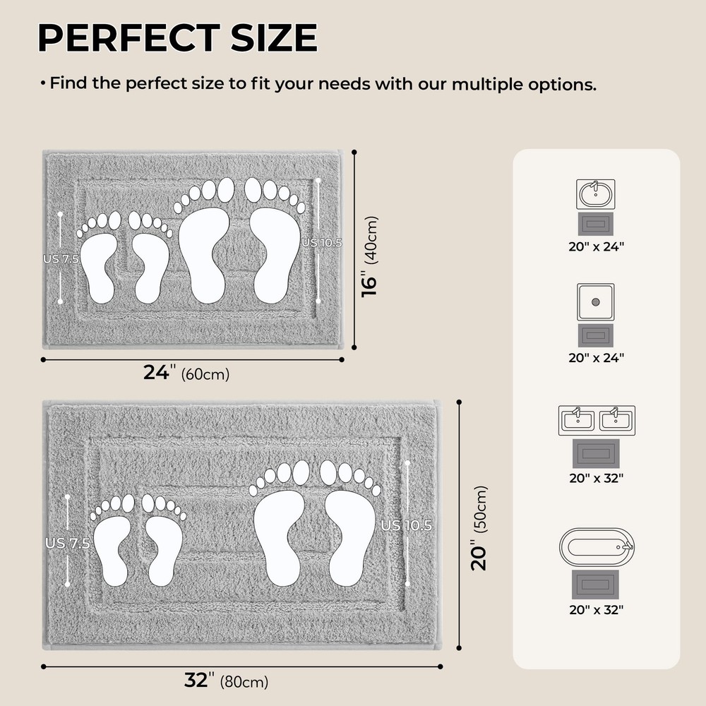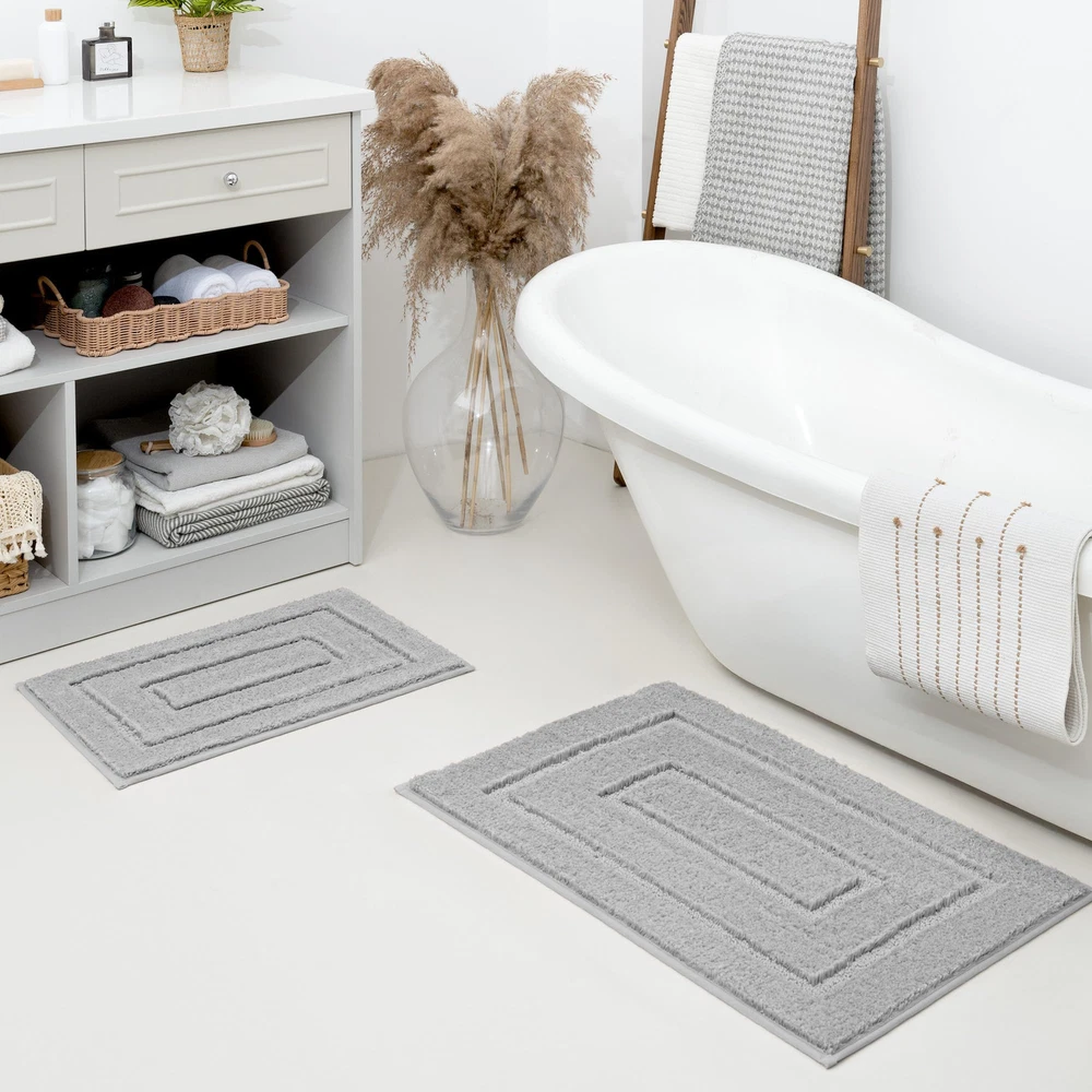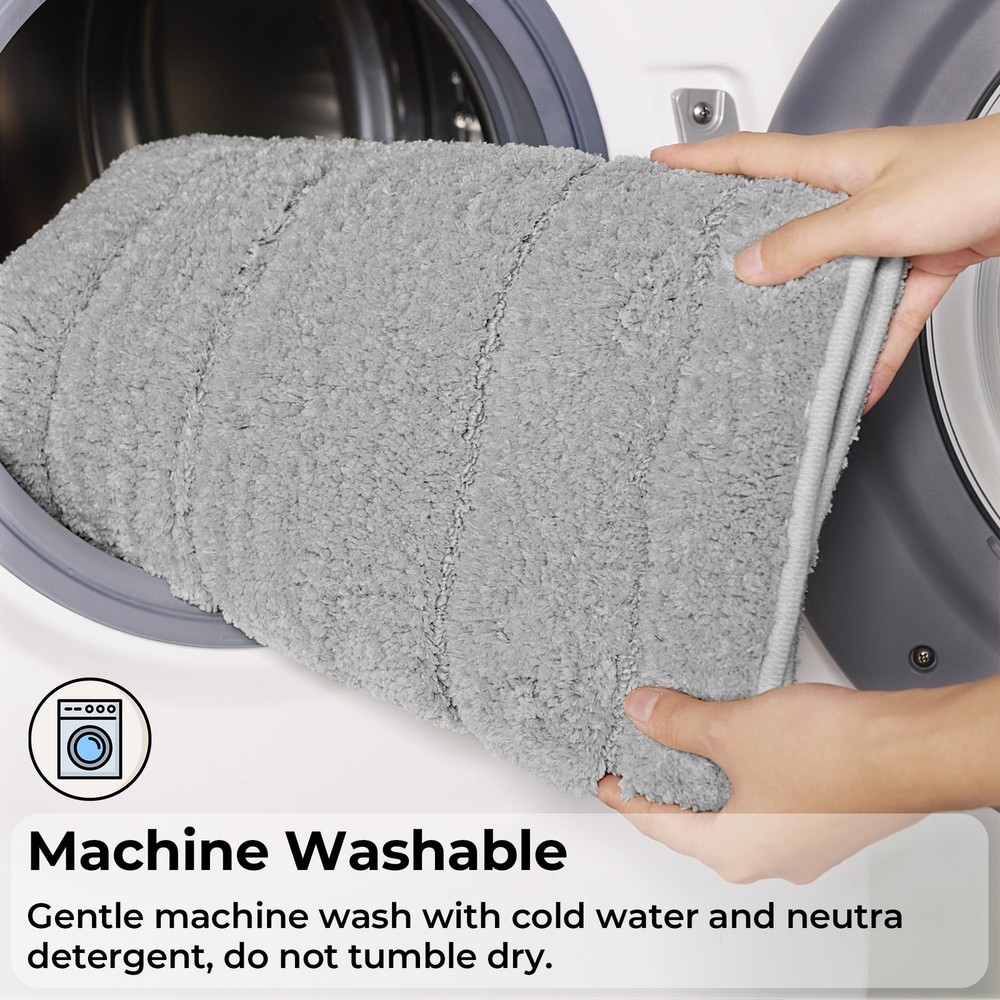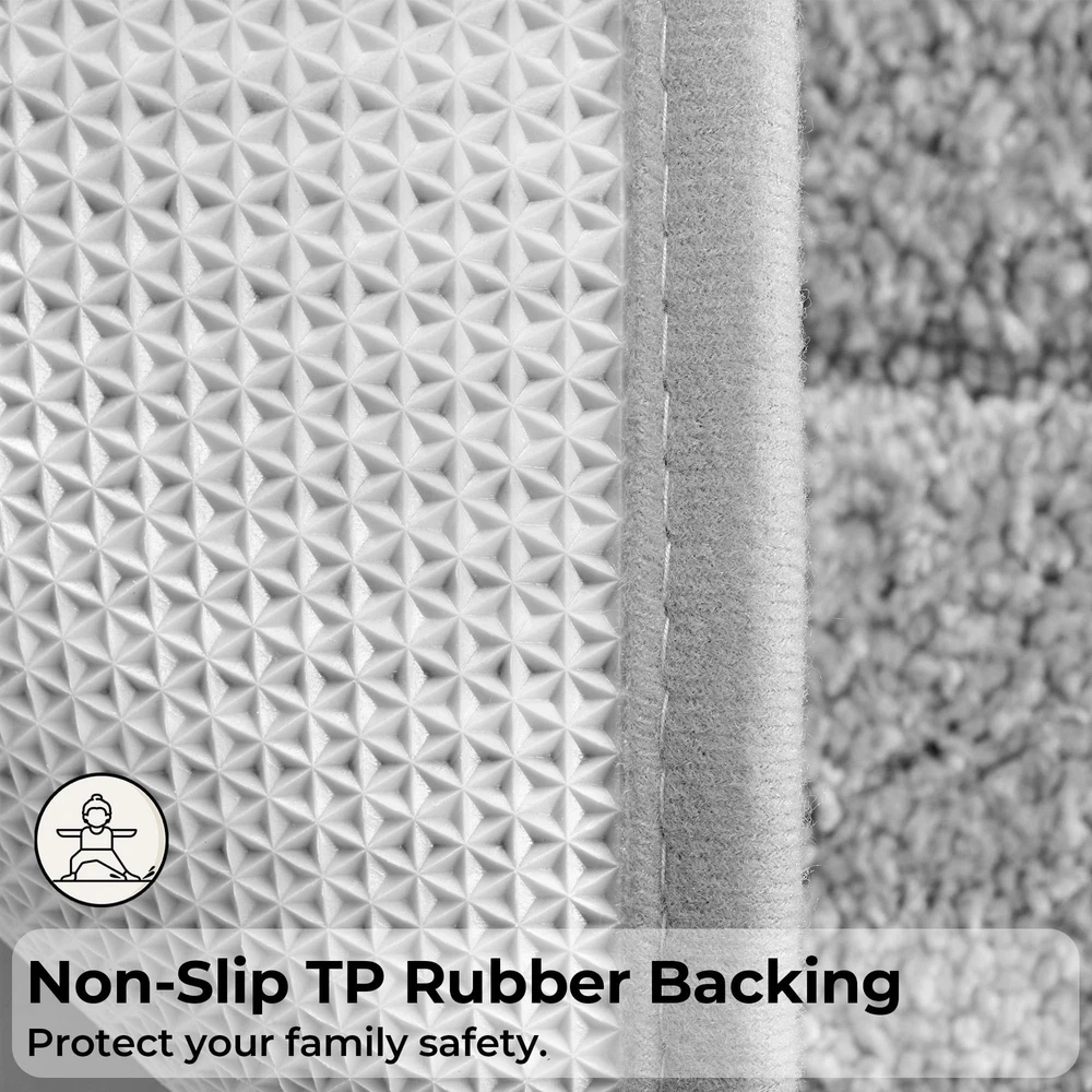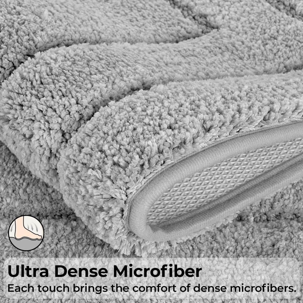Soft & Plush Comfort: The bathroom rugs set is crafted from high-quality polyester microfiber with a dense, plush pile that provides warmth and a soothing feel underfoot. The thick, soft texture protects feet from cold floors and keeps them dry, enhancing relaxation after each shower. Ultra Absorbent: Crafted from thick, plush, high-density microfiber, this bath rugs is designed to quickly absorb water and moisture, keeping your floors dry and clean. The deep pile traps moisture inside, preventing water from dripping onto the floor as you step out of the bath, shower, or stand by the sink. Non-Slip & Safe: Our bath mat set features a premium, skid-resistant TPR rubber backing that ensures stability and prevents shifting or skidding. This durable design adds security and peace of mind to your bathroom, offering both safety and comfort. Machine Washable: Made from durable materials, our bath set are designed to withstand multiple machine washes without shedding fibers or fading in color. The water absorption and anti-slip features remain intact even after drying. Decorative & Multipurpose: This bathroom rug set features a unique geometric pattern that adds both style and charm to your bathroom. Its versatility makes it perfect for providing warmth and support in various spaces—whether in the bathroom, kitchen, bedroom, entryway, laundry room, or even for your pet. It combines aesthetic appeal with practical functionality, enhancing any room in your home.