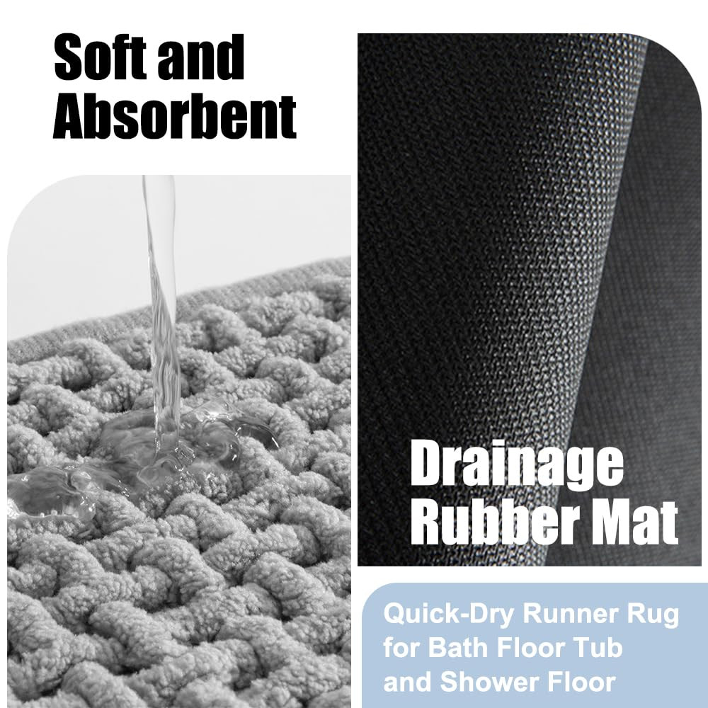 1. Fashionably Design: Elevate your bathroom decor with this stylish chenille bath mat, bringing both function and fashion to your space. 2. Non Slip Rubber Backing: Stay safe and secure with the non-slip rubber backing, providing stability on any bathroom surface. 3. Superior Absorbency: Enjoy a plush and absorbent bath mat that quickly soaks up moisture, keeping your floors dry and clean. 4. Easy to Clean: Simply toss this quick-dry runner rug in the wash for hassle-free cleaning, maintaining its softness and color. 5. Multi-Purpose Use: Beyond the bathroom, this versatile bath mat also works great in the kitchen, laundry room, or any other high-traffic area in your home.