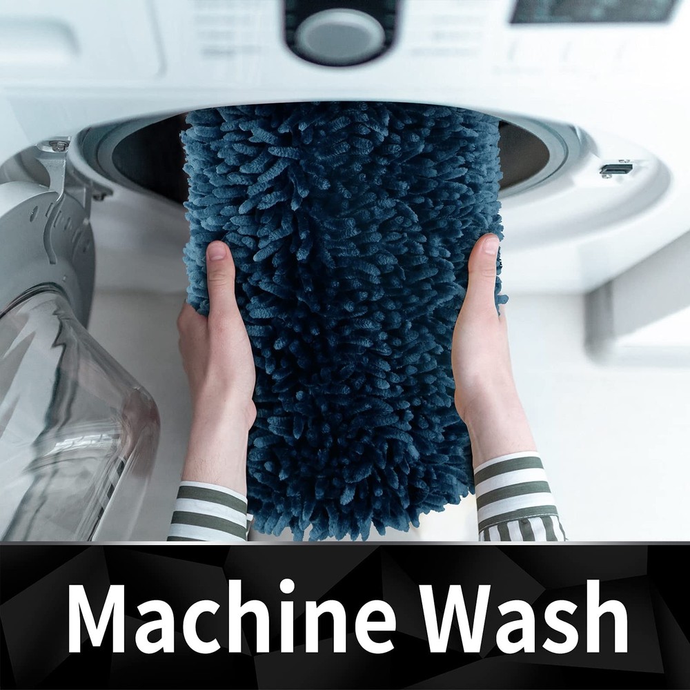 This bath rug is a game-changer! The ultra-soft chenille feels amazing underfoot and absorbs water instantly. I love how the non-slip backing keeps it firmly in place for safety. The rich navy blue adds a stylish touch to my bathroom, and it's so easy to just toss in the washing machine when needed. The plush texture is like walking on clouds after a shower - way better than hard tile floors. It dries quickly and maintains its shape wash after wash. Perfect combination of comfort, functionality and good looks!