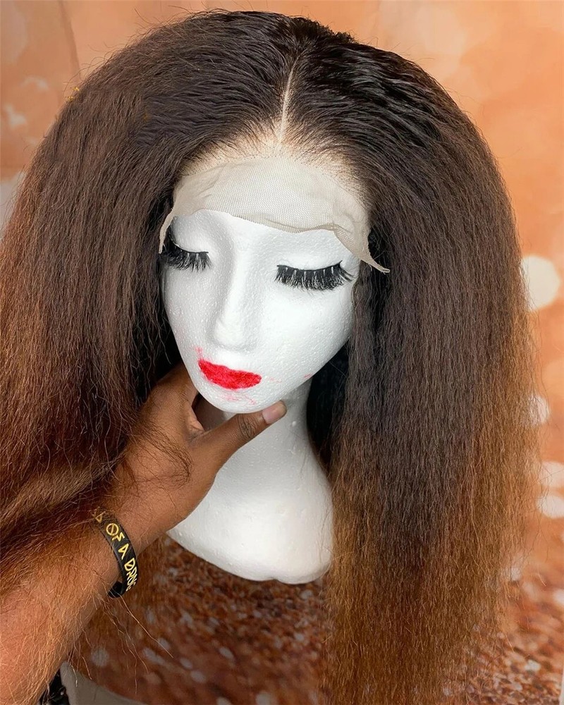 HomeSoft Ombre Brown Kinky Straight 180 Density Lace Front Wig with Baby Hair