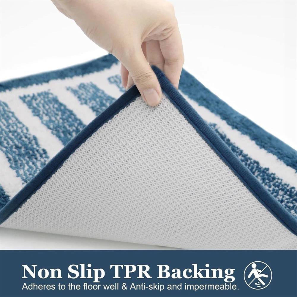 📝 Product Description Features: Made of soft and thick microfiber material for a luxurious and comfortable feel. Non-slip backing design ensures the mat stays securely in place, preventing slips and falls. Highly absorbent material quickly absorbs water, keeping your bathroom floor dry and safe. Machine washable for easy cleaning and long-lasting freshness. Suitable for bathrooms, showers, vanities, or any indoor floor area. Specifications: Material: Microfiber Color: Khaki/Blue Stripe/Gray Size: 31.5" x 20" (80 x 50 cm) Shape: Rectangular Type: Bath Mat/Bathroom Rug Package Includes: 1 × Soft Plush Bath Mat Washing Instructions: Machine washable; please wash separately in cold water. Tumble dry on low heat or air dry. Do not bleach or iron. What's the features about the Insun bathmat mat? Material: high quality microfiber fiber and TPR rubber backing . Extra soft and comfortable designed to absorb water and keep your bathroom floor dry and clean. The bath rug helps to trap moisture deep within the rugs fabric fingers allowing the rug to dry quickly . Non-slip bottom is made of high quality TPR material. This anti-skid backing has slip resistance on the floor surface, that it won't slip or slide to keep you more safe. Widely Use: Suitable for hotel,sauna,shower,gym for bathroom,Bedroom,dining room,living room,or at any place in your home where you want support and warmth on your toes! Machine Way: Machine wash separately in cold water using mild detergent. Use only non-chlorine bleach when needed. Tumble dry on low setting and shake to restore fluff. P ackage included:1 piece bath rug. Soft & Comfortable Soft and comfortable feeling,just like walking on the cloud. Soft pile that soothes tired foot and shields toes from the cold floor. No Shedding Easy to clean, It can be washed by hand or machine. Bath mats are very absorbent and will maintain shape and colors after multiple wash and dry cycles.H Plush & Water Absorbent Extra soft shaggy microfiber fabric helps save your floors from dripping water. Moisture is trapped in the mat's deep pile, allowing the rug to dry quickly and cleanly