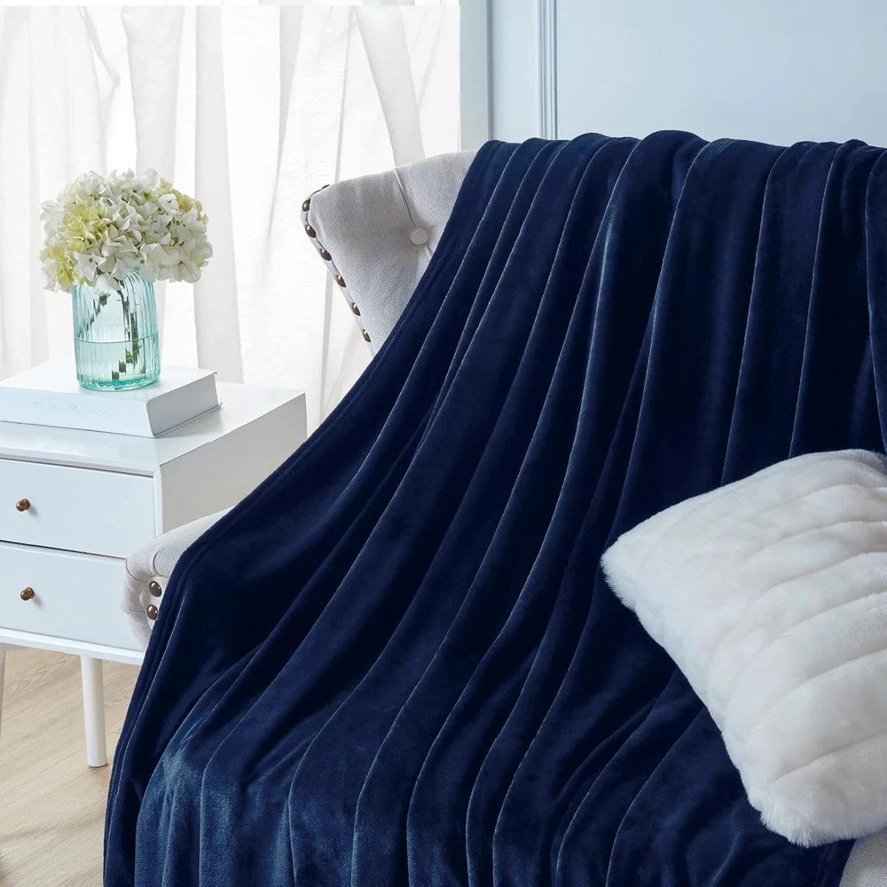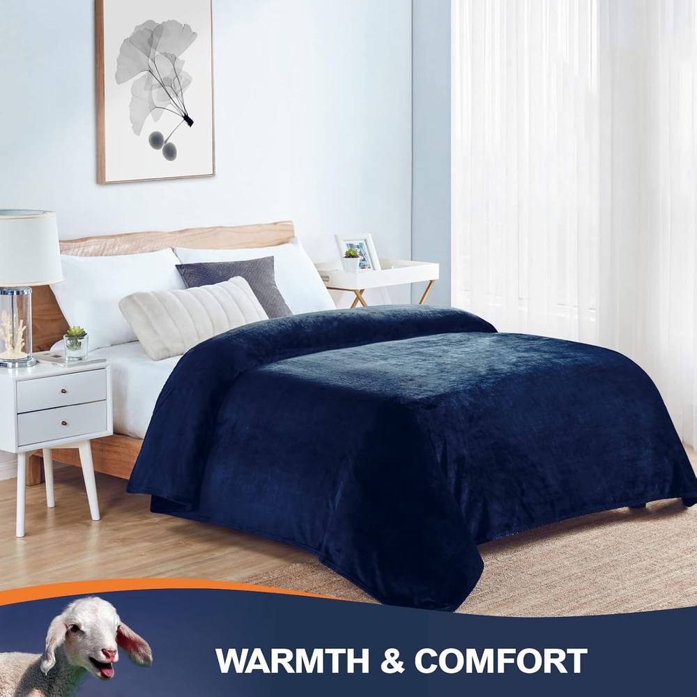 Soft Plush Fleece Blanket XL-Twin 66x90 Navy Lightweight Cozy Throw