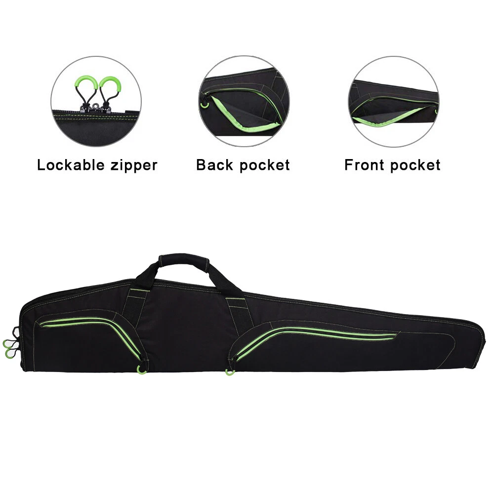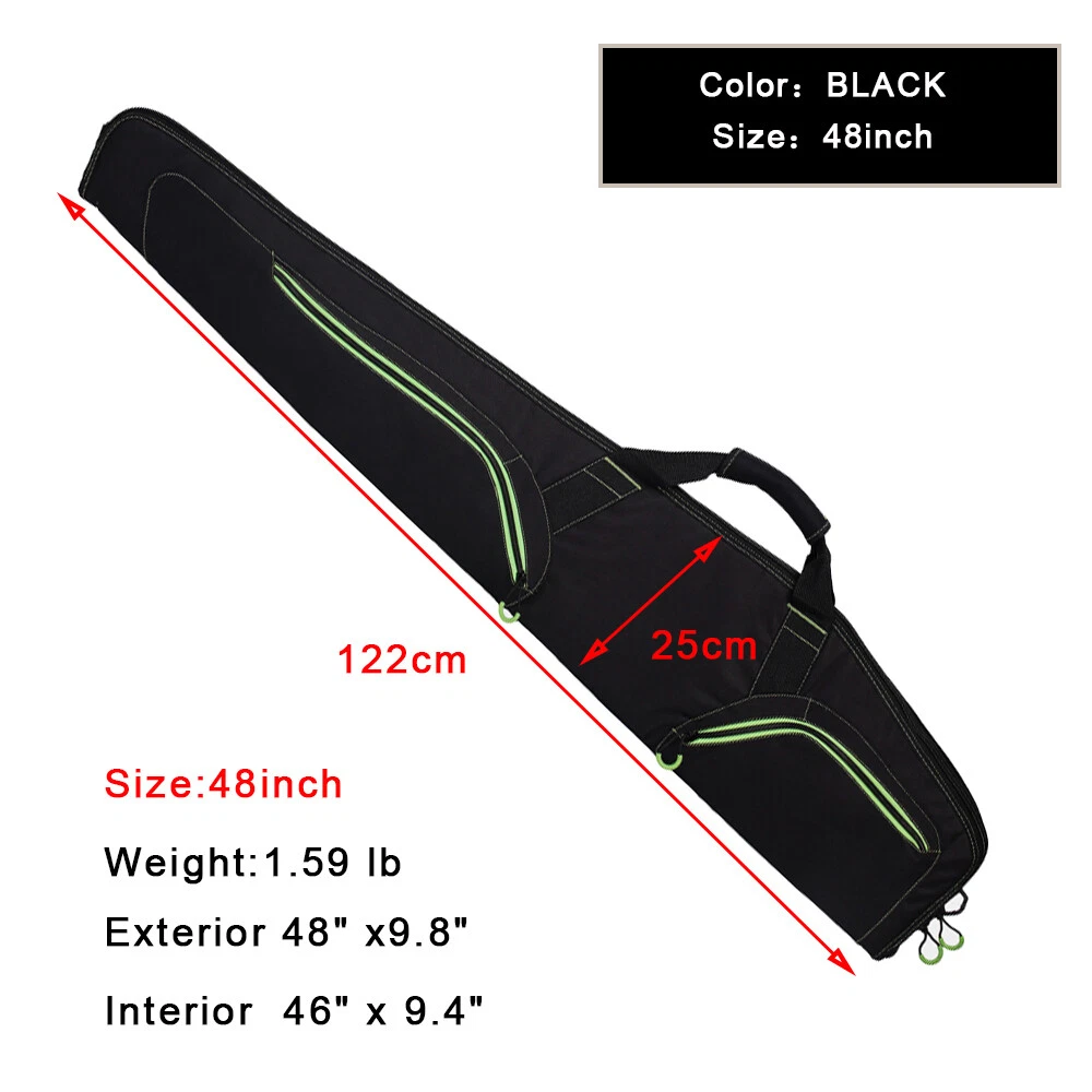 Products Photo Product Description Kylebooker Rifle Case Constructed with 600D nylon fabric prevents your guns from scratches, dropping and other potential damages. Two zippered accessory pockets for extra storage:Conveniently keep your gun or shooting accessories with you wherever and whenever you want. Comfortable carrying handles and double zippers make the handgun range bag secure yet convenient to carry out. It is ideal for hunting, shooting, camping and etc. . Size: Size(40inch): Exterior 40" x 9.4";Interior 38" x 9" Size(44inch): Exterior 44" x9.8";Interior 42" x 9.4" Size(48inch):Exterior 48" x 9.8";Interior 46" x 9.4" Size(52inch): Exterior 52" x 11";Interior 50" x 10.5" Weight: 650g-750g Product Details Return Policy About Feadback Return Policy 1. Customer satisfaction is our top goal. We believe our items are so outstanding. All products are quality checked. They are new and in good condition when shipped to our customers. We are convinced you will be happy with your Purchase. 2. If product is defective or damage upon arrival, or wrong product shipped, please contact us immediately. Returns accepted within 14 days of delivery date and item must be in original new condition, not worn or altered in any way with attached tags & wrap. Otherwise deal is final. Return shipping must be paid by buyer. 3. Please contact us first if you have any problems/questions/concerns. We will be happy to resolve any issues you may have in a cordial and friendly manner. 4. We appreciate your Postive Feedback, and will do the same in return. DO NOT leave negative feedback without first communication with us. Please allow max 2 business days for us to response. About Feadback When you satisfied with our product and services please leave us positive feedback. If a problem occurs, contact us immediately with any email request. Just contact us using the " Ask the seller a question" link on eBay.