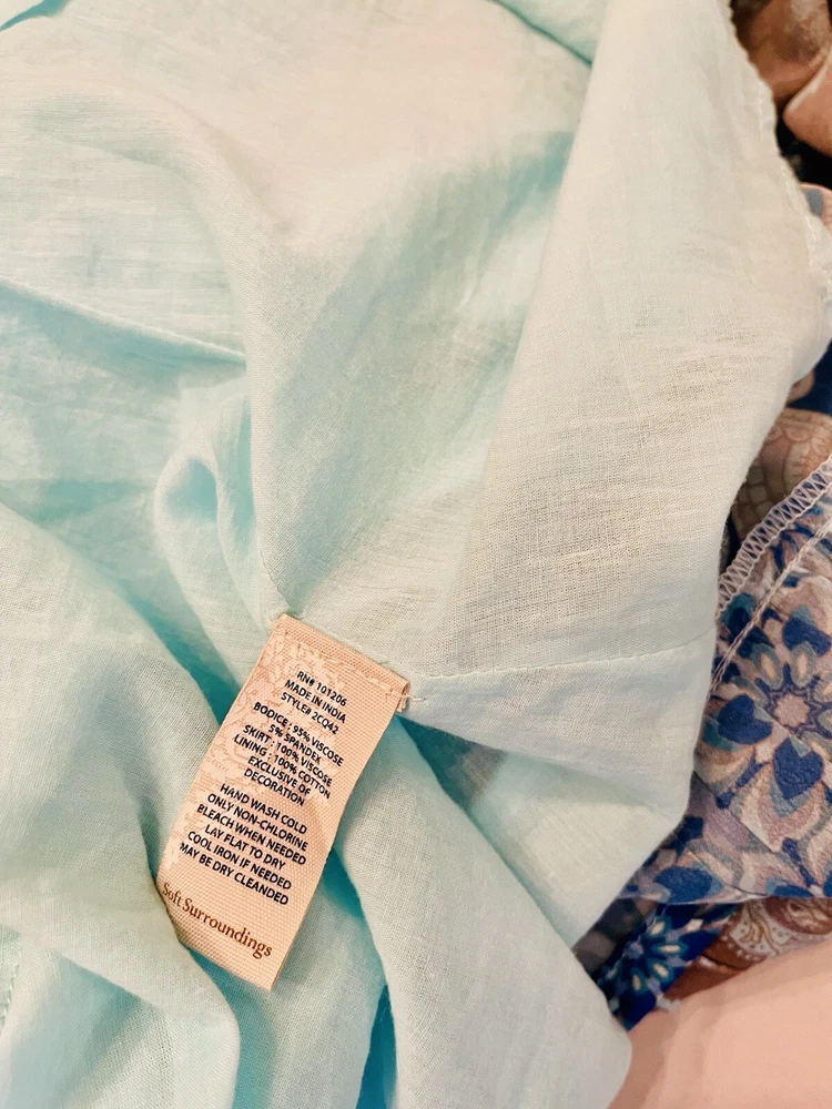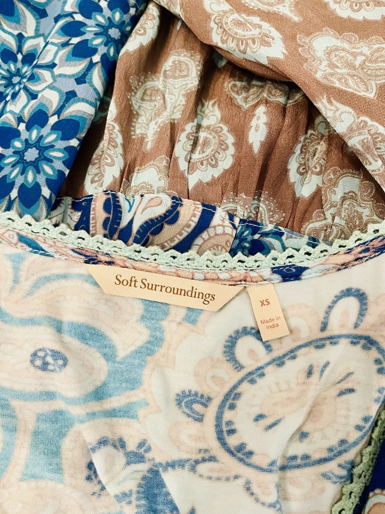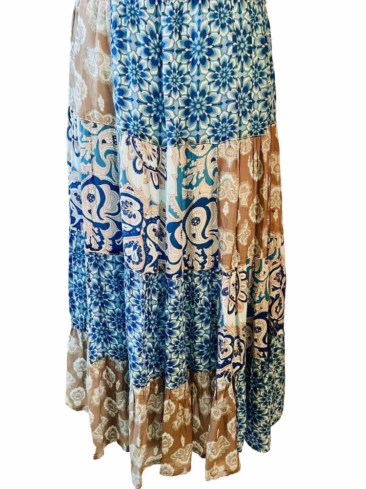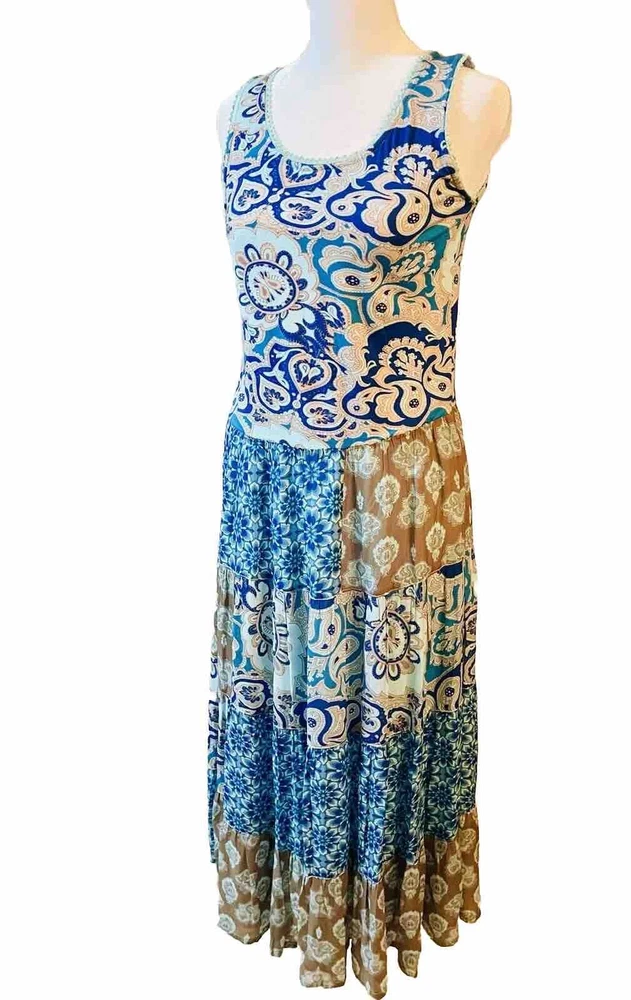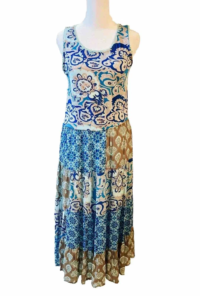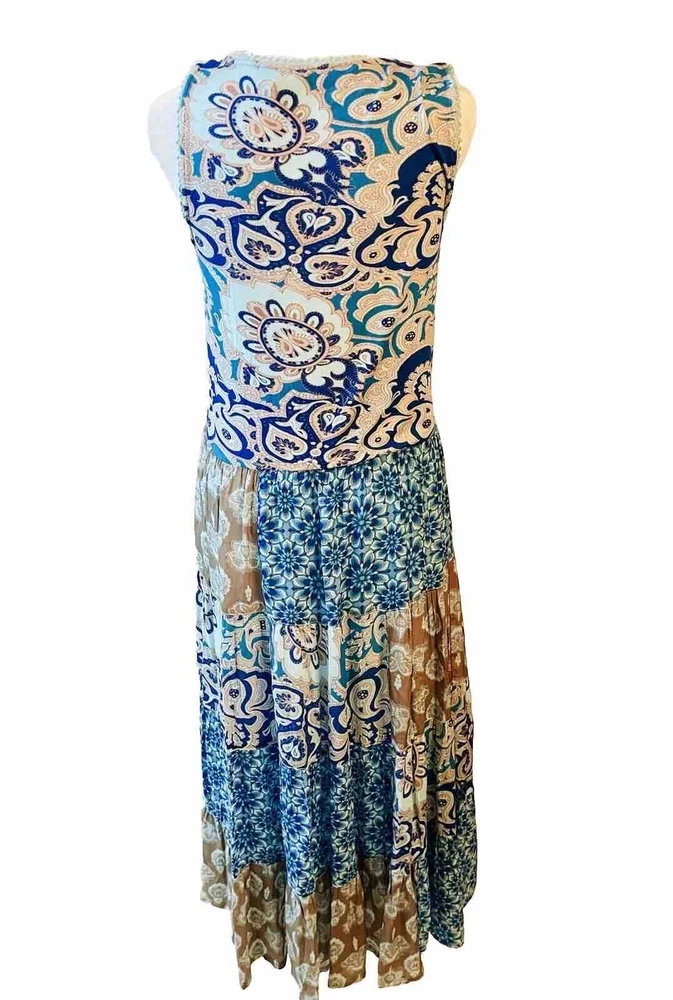 Soft Surrounding Dress Patch Work Layering Bohemian peasant Blue Casual Woven XS