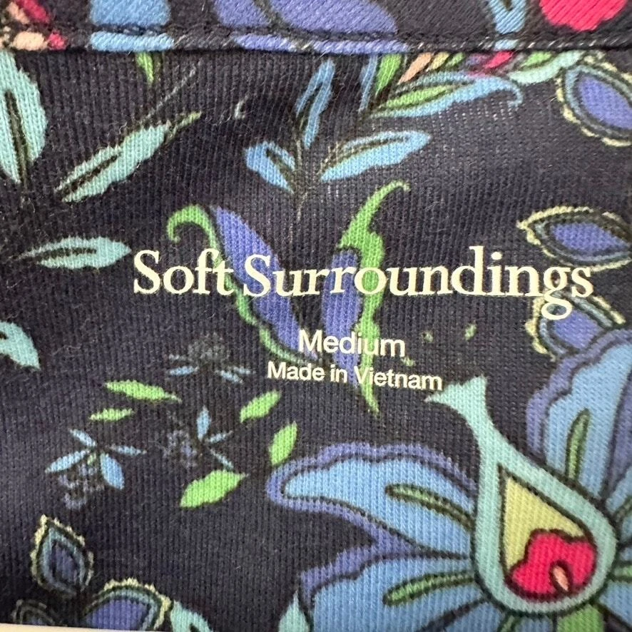 Soft Surroundings Essential Supima T-Shirt Dress Sleeveless Blue Folk Art Floral Knee-length t-shirt dress is made of the softest, smoothest, strongest and stretchiest cotton blend around. V-neck. Pockets. Size: MEDIUM Approx. measurements: 18" across (pit to pit), 40" long (shoulder to hem) Condition: Pre-loved and in gently used condition. Light wear. no stains, rips, or holes. The stitching along the sleeves is showing and is unravelling in some spots on the right arm. - see all pics for any wear/condition Actual colors may vary. We do our best to ensure that our photos are as true to color as possible. However, due to photographic lighting sources, inconsistencies of various monitors settings, we cannot guarantee that the color you see accurately portrays the true color of the product. folksy, folk art, feminine, cottage, cottagecore, boho, bohemian, summer,