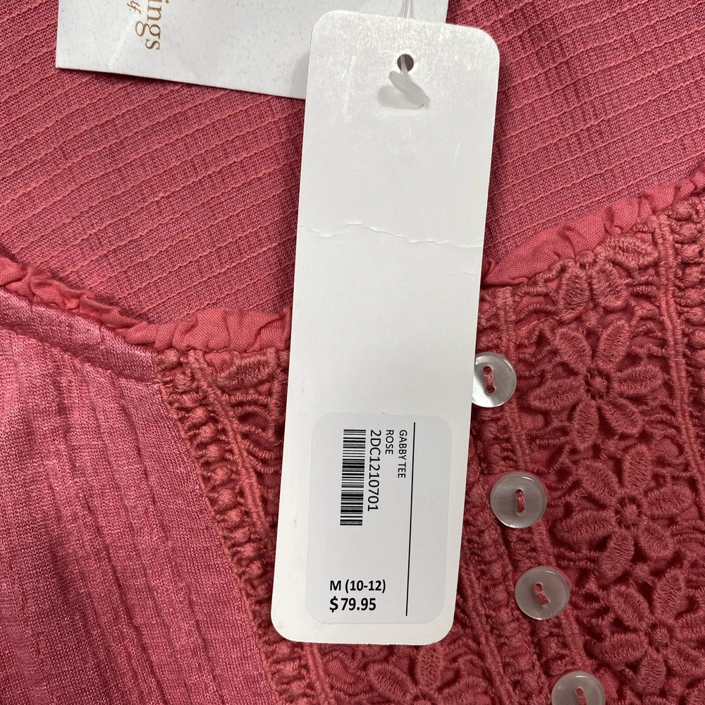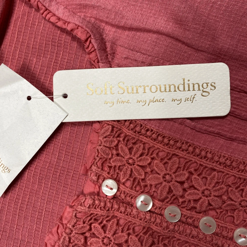 Soft Surroundings Gabby Tee Boho Peasant Sweatshirt Womens Size M Rose Pink $79