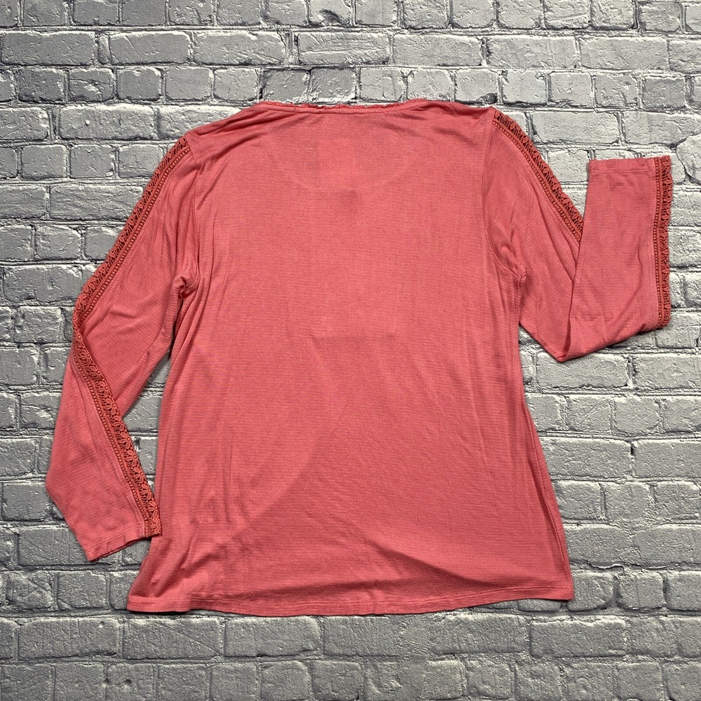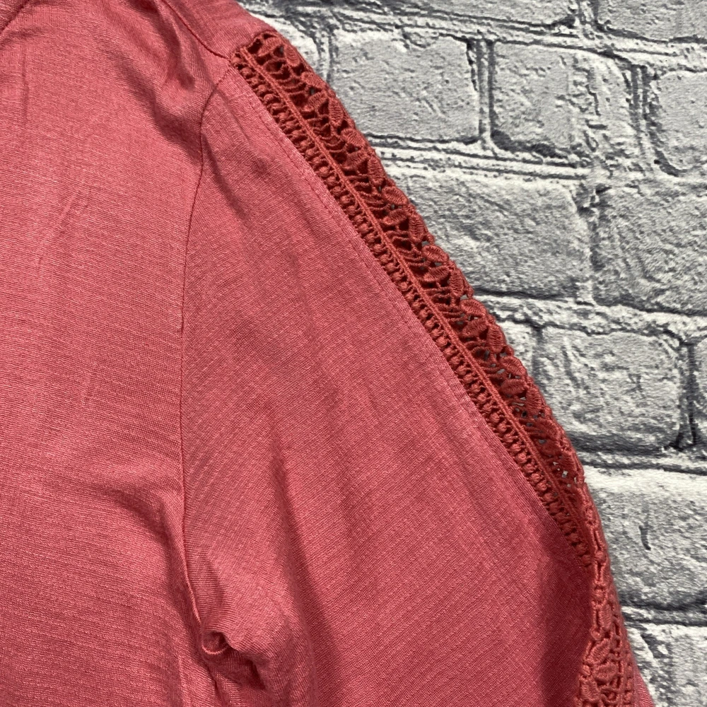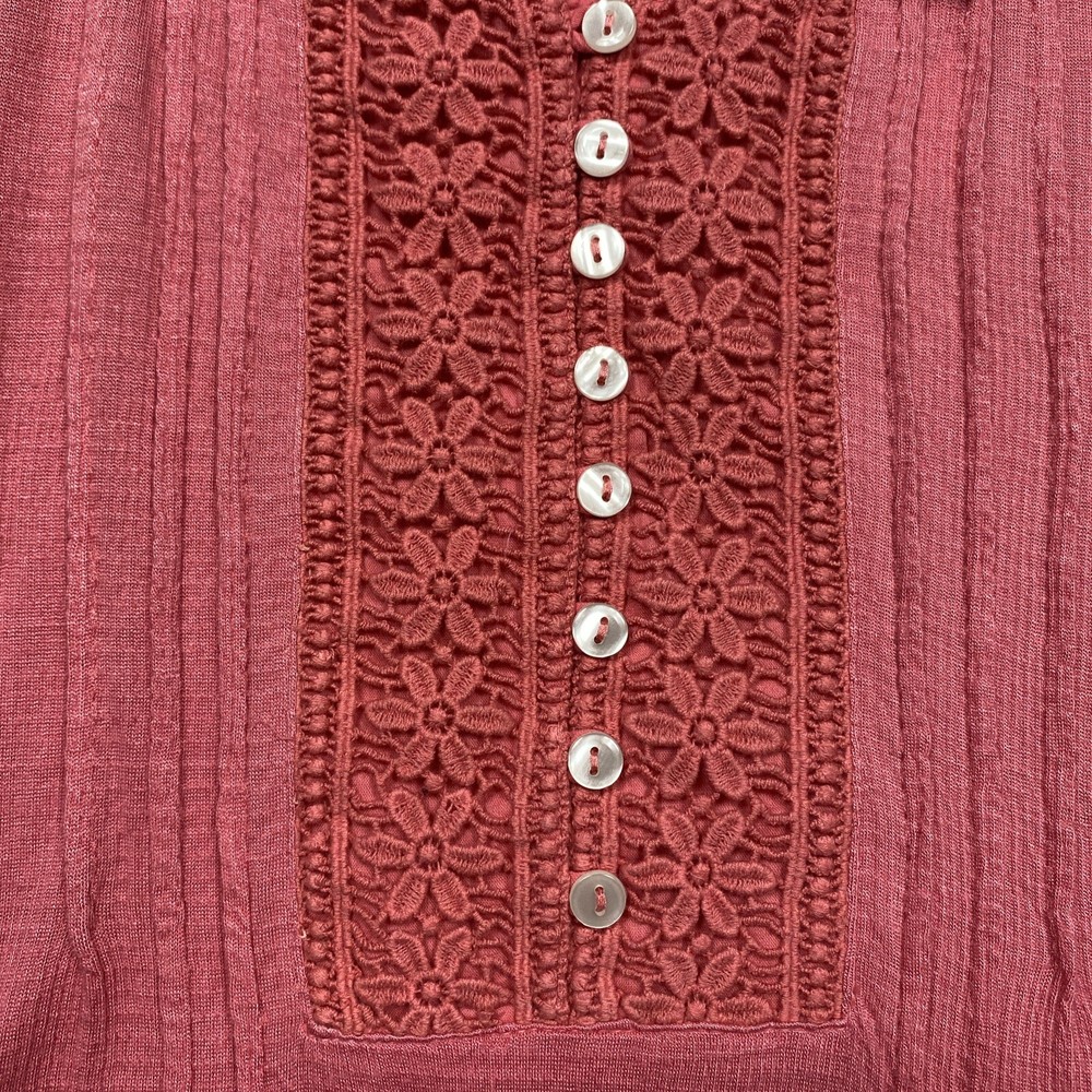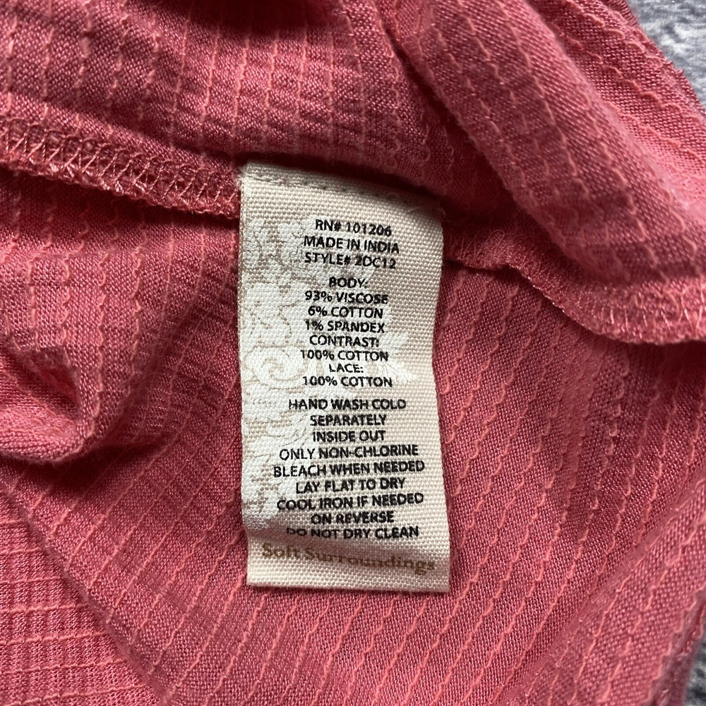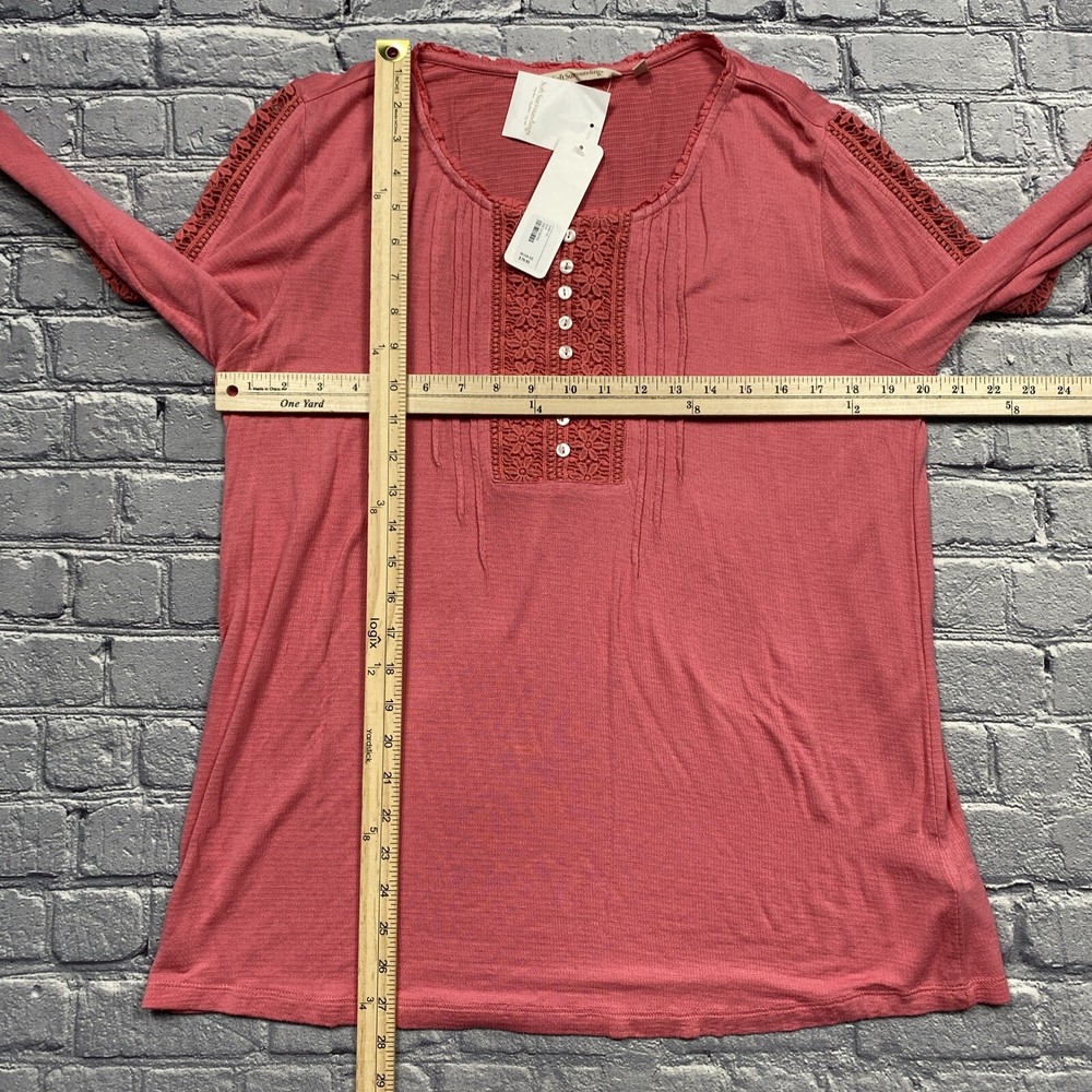 Style: Tunic Size: M Vintage: No Character: Boho Brand: Soft Surroundings Type: Blouse Neckline: Round Neck Color: Pink Sleeve Length: Long Sleeve Accents: Crochet Material: Cotton Blend Fit: Classic Department: Women Fabric Type: Knit Size Type: Regular Season: Fall, Winter, Spring Features: n/a Theme: Bohemian, Classic, Peasant, Coquette, Feminine, Hippie, Fairy, Cottagecore, Pinkcore Occasion: Casual, Party/Cocktail, Travel Pattern: Solid