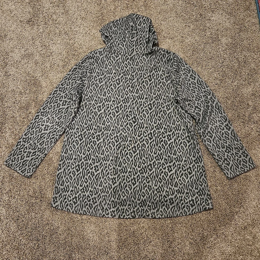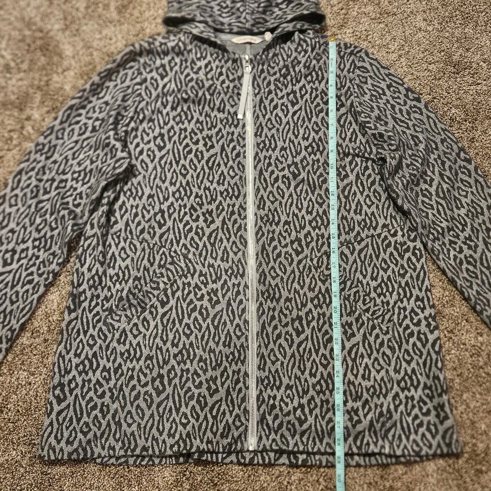 Soft Surroundings Hoodie Women Size L Lyra Leopard Hooded Zip Front Jacket Gray
