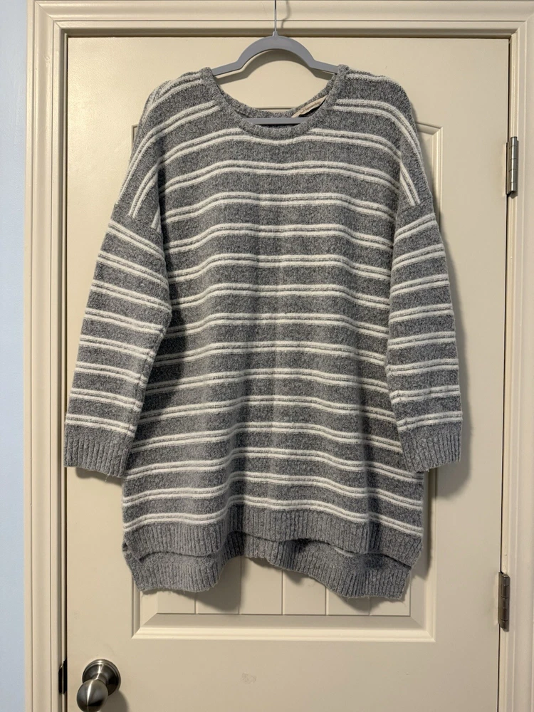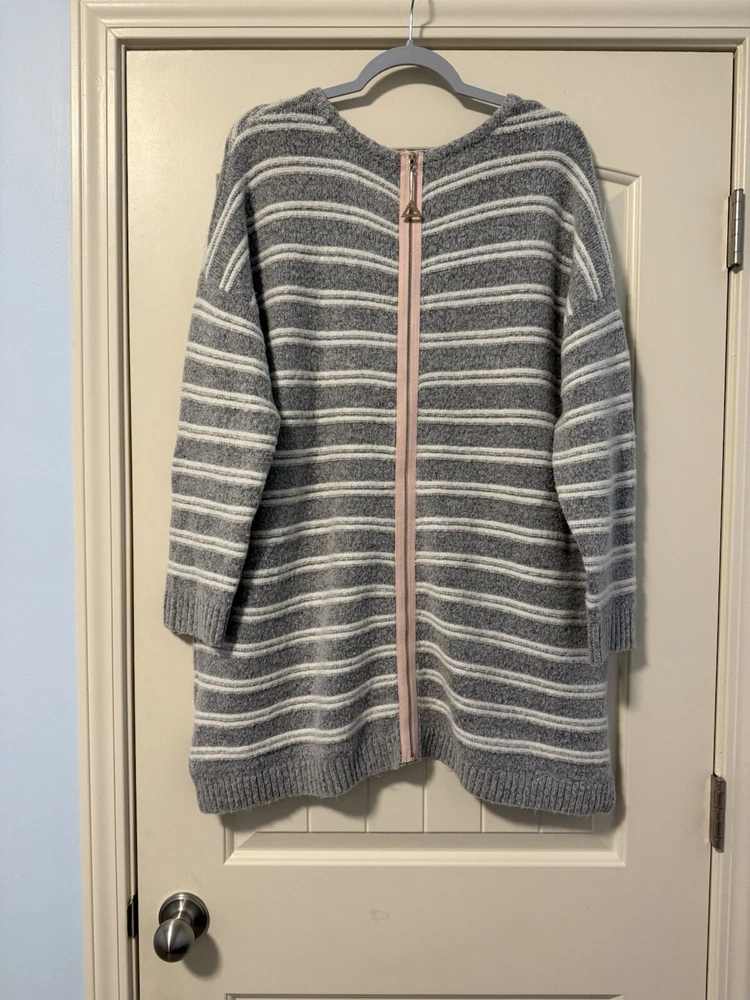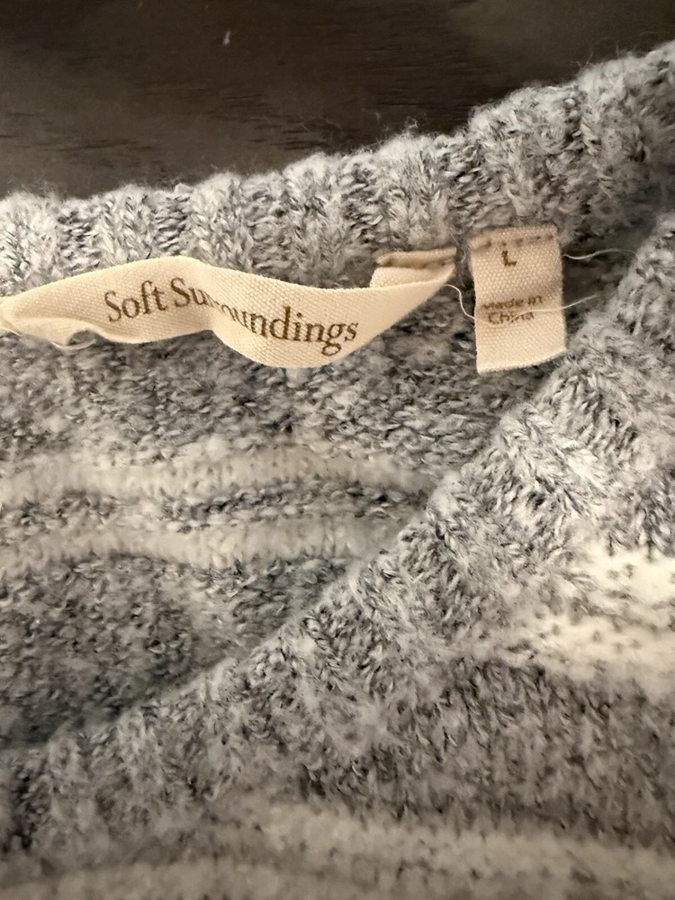 Soft surroundings long sleeve back zipper stripped cozy soft sweater tunic size L