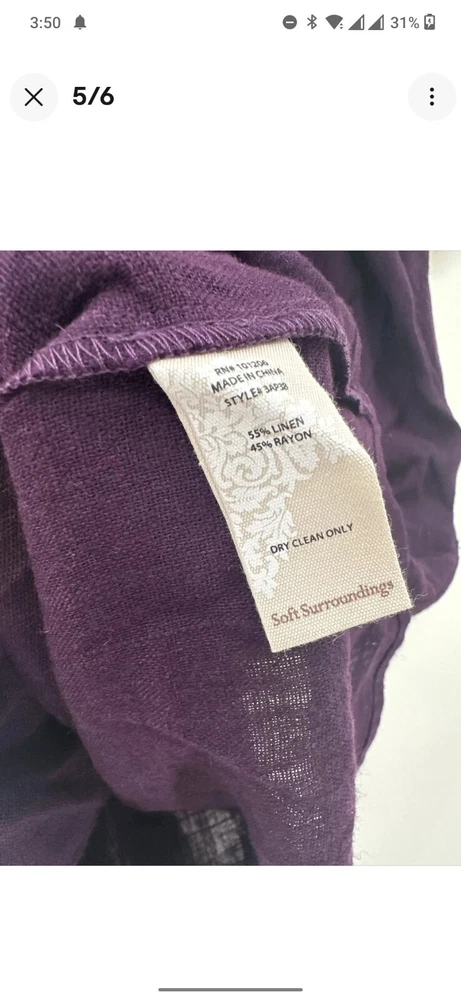 SOFT SURROUNDINGS PURPLE LINEN SHORT SLEEVE OPEN SHOULDER DRESS WOMEN SIZE SMALL。 物品状况为Pre-owned。 运送服务为USPS Ground Advantage。