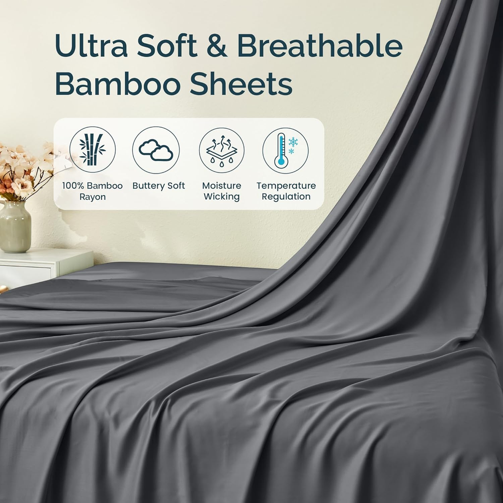 Luxury Cooling Rayon Bamboo Queen Sheets Set with Deep Pocket Fitted