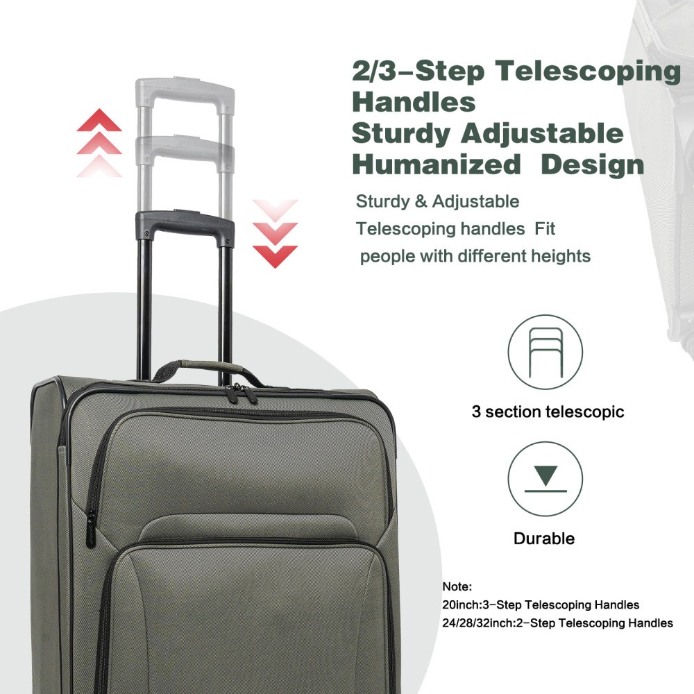 ✈️ Your All-In-One Travel Companion - 5 Pieces for Every Journey! Whether you’re planning a weekend getaway, family vacation, or business trip, this 5-piece softshell luggage set has you covered! Includes 20” (carry-on), 24” (medium), 28” (large) suitcases, a stylish duffel bag, and a convenient toiletry bag—all in a sleek dark green design. Lightweight, expandable, and built to last, it’s the perfect blend of functionality and style for travelers of all kinds. Backed by 1-Year Manufacturer Warranty and 30-Day Free Return Policy —shop risk-free on eBay! 🌟 Key Features & Benefits ✅ 5-Piece Complete Set - No more mixing and matching! This versatile set covers every travel need: 20” carry-on (fits overhead bins), 24” for 3-5 day trips, 28” for long journeys, a duffel bag for weekend escapes or as an extra carry-on, and a toiletry bag to organize cosmetics/toiletries. Perfect for solo travelers, couples, or families . ✅ 25% Expandable Capacity - All suitcases and the duffel bag feature 25% expansion capability—unzip the expansion zipper to add extra packing space for souvenirs, gifts, or last-minute items. Solves the “overpacking” dilemma without sacrificing organization . ✅ Durable 600D Oxford PVC Fabric - Crafted from premium 600D twill Oxford fabric with PVC coating, this softshell luggage is tear-resistant, scratch-proof, and water-resistant . Protects your belongings from light rain, spills, and rough handling during travel—built to withstand the rigors of airports and road trips . The polyester core ensures lightweight performance (total set weight: 21.16 lbs) for easy carrying . ✅ Easy-Access Exterior & Smart Interior - Dual exterior pockets (including a zippered compartment) let you quickly grab laptops, books, passports, or water bottles without opening the main compartment. Interior features mesh pockets, durable zippered sections, garment straps, and sealed holes—keep clothes, shoes, and accessories organized and wrinkle-free. Maximize space utilization with thoughtful partitioning . ✅ Softshell Advantages - Unlike bulky hardside luggage, this softshell set is flexible enough to fit into tight overhead bins or car trunks, and folds flat for easy storage when not in use . Lightweight design reduces travel fatigue, while the sturdy construction ensures long-lasting use . ✅ Sleek & Practical Design - The dark green color adds a touch of elegance, standing out from standard black luggage. Smooth-rolling wheels (implied in softshell luggage design) ensure easy maneuverability, while reinforced stitching enhances durability at stress points. 📏 Product Specifications Dimension Type Details Assembled Size (Largest Suitcase) 19.48” L x 12.79” W x 31.10” H (expands 25%) Product Weight 21.16 lbs (total set) Packaged Size 31.10” L x 19.48” W x 12.79” H Packaged Weight 23.15 lbs Material 600D Twill Oxford Fabric + PVC Coating + Polyester Color Dark Green Included Pieces 20” Suitcase, 24” Suitcase, 28” Suitcase, Duffel Bag, Toiletry Bag Key Features Expandable (25%), Water-Resistant, Exterior Pockets, Organized Interior 🛡️ Warranty & Return Policy (eBay Compliant) 1-Year Manufacturer Warranty : Covers defects in materials and workmanship (e.g., broken zippers, torn fabric, faulty stitching). We provide free replacement parts or repair services within the warranty period . 30-Day Free Returns : Not satisfied with your luggage set? Return within 30 days for a full refund—no restocking fees. We cover return shipping for US orders. eBay Buyer Protection : Your purchase is fully protected, ensuring a hassle-free shopping experience. 🌍 Why Travelers Love This Set This 5-piece luggage set addresses the most common tra ve l frustrations: lack of space, disorganization, and heavy luggage. The expandable design adapts to your needs, the durable material stands up to frequent use, and the complete configuration eliminates the need for multiple purchases. Whether you’re a frequent flyer or occasional traveler, this set offers unbeatable value, style, and functionality. It also makes a thoughtful gift for friends or family who love to travel! Order now for fast US shipping—gear up for your next adventure with confidence!