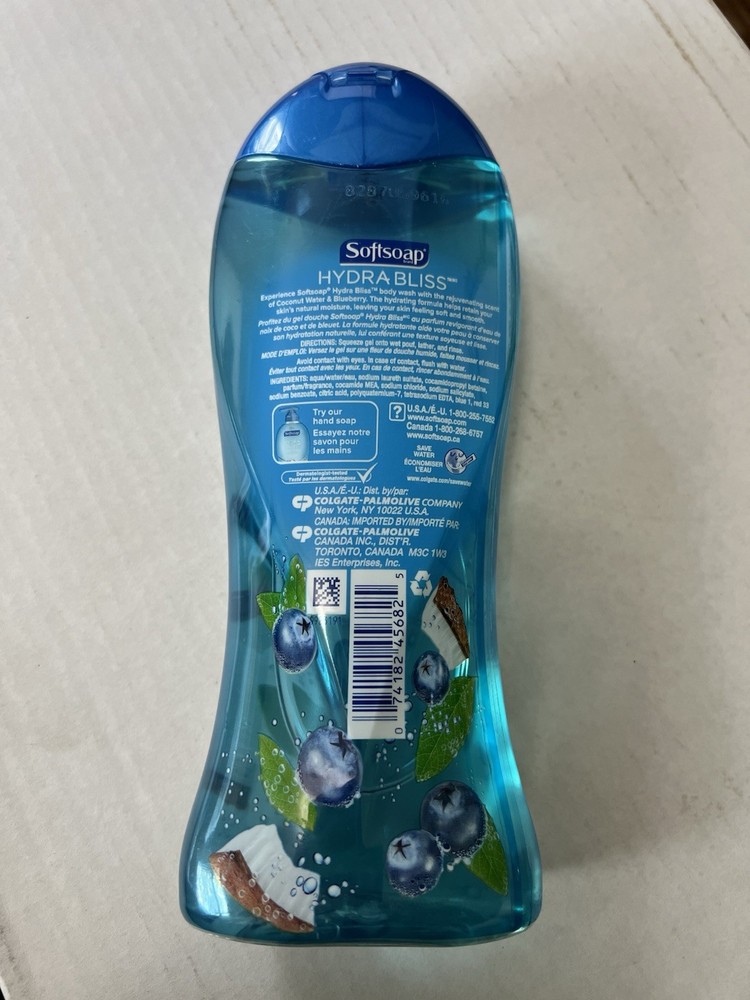 Features: Hydrating Product Line: Softsoap Hydra Bliss gtin13: 074182456825 Scent: Coconut, Blueberry UPC: 074182456825 Brand: Softsoap Skin Type: Normal Skin Body Area: Body Size: Regular Formulation: Liquid Volume: 15 fl oz Type: Body Wash Department: Men, Teens, Unisex, Women