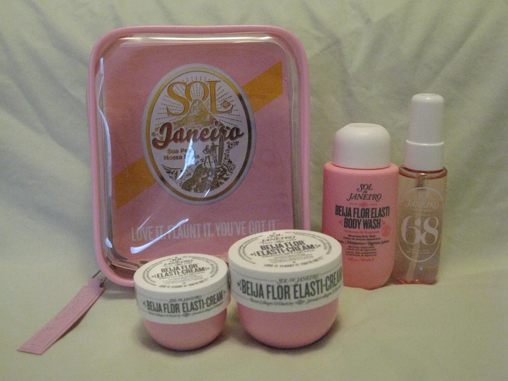Welcome to my Auction! Up for bidding is a 5 piece deluxe travel set of Beija Flor products from Sol de Janeiro. Perfect for on-the-go, travel use and refreshing your beauty routine. Includes: Beija Flor Elasti-Cream Collagen Boosting with Bio-Retinol & Squalane - one 1.7oz jar & one 25ml (.84oz) jar Beija Flor Elasti Body Wash - 3oz bottle Beija Flor Cheirosa '68 Body Fragrance Perfume Mist - 1oz spray bottle One clear Sol de Janeiro zipped travel bag Please ask all questions before bidding - serious buyers only. I will report non-paid items to ebay. Please be considerate and make sure you can complete your sale. Returns are accepted only in cases of items not being as described or wrong item sent. I cannot accept returns of used cosmetics. I am an individual seller - not a department store. Processing returns is time-consuming and costly. Ebay takes a percentage of every sale, so I cannot refund shipping costs. Be sure you like the color, check the size, ask questions etc. to ensure you will be pleased with your purchase. Thank you for visiting and good luck!