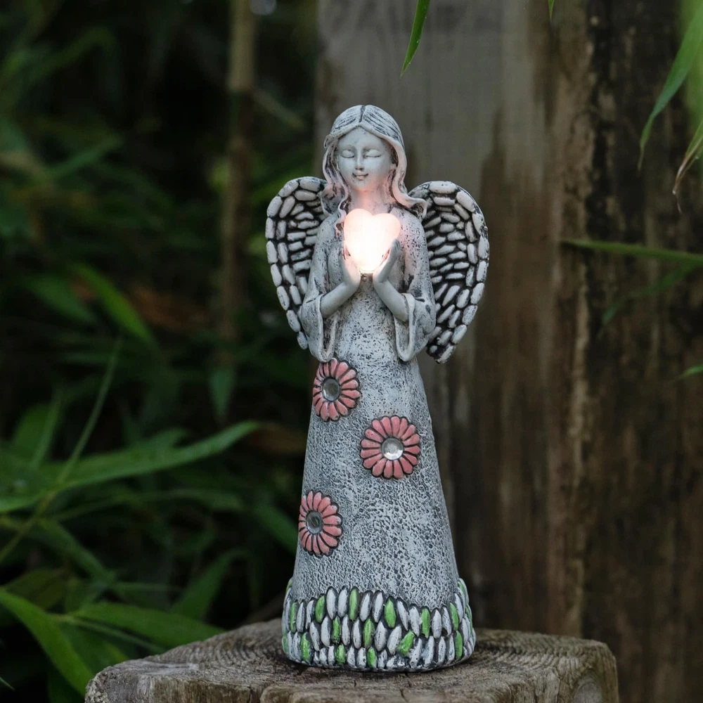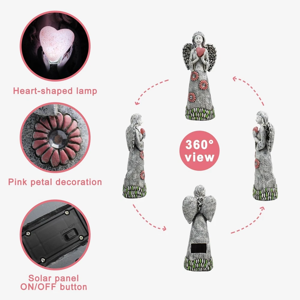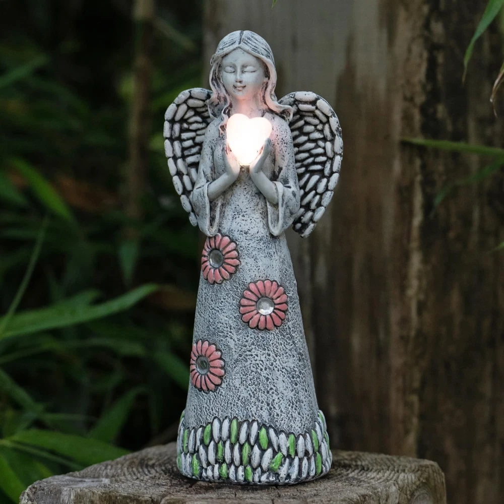 Solar Angel Garden Statue,Garden Angel Figurines,Solar Garden Sculpture with Resin Angel Decor for Patio Lawn Yard Porch Decorations,Housewarming Garden Gift,10.03inch Product Details Color: Angel Garden Statue 01 Brand: Rezpuao MPN: Angel003 UPC: 760627737023 EAN: 0760627737023 Product Dimensions: 3.89 x 3.07 x 10.03 inches Item Weight: 14.9 ounces Manufacturer: Rezpuao Country of Origin: China Item model number: Angel003 Date First Available: March 6, 2023 Wonderful Garden DecorWhen viewing this Angel Garden Figurine,one can't help to feel a senesce of strength and peace.The crafted design and workmanship are absolutely beautiful.Whether on a shelf for display or out in the garden,there is the appreciation and reverence brought by this work of art. Exquisite CraftSolar angel statues are made of resin,hand-painted,features beautiful crafted wing details,flowers,heart,cross etc.The gentle angel figurines make people feel comfortable and safe. Solar Garden DecorAngel sculpture with solar light is easy to use.Just press the light button with "on" position,it will auto charge during the day and light up at night.The guardian angel statue is a symbol of love and protection.It reminds you that you will never be alone and that you are loved. Perfect Angel Statues GiftThe angel statue decor with solar lights are beautiful and unique gifts for Mother's Day,Anniversaries,Weddings,Birthdays,Housewarming or in memory of loved ones.They will bless you and your family with positivity and love. Perfect ServiceRezpuao garden angel statues are suitable for garden decor, garden gift,lawn ornaments etc. If you have any problems, please send us an email between 6-12 PM local time and we will give you a satisfactory answer as soon as possible.