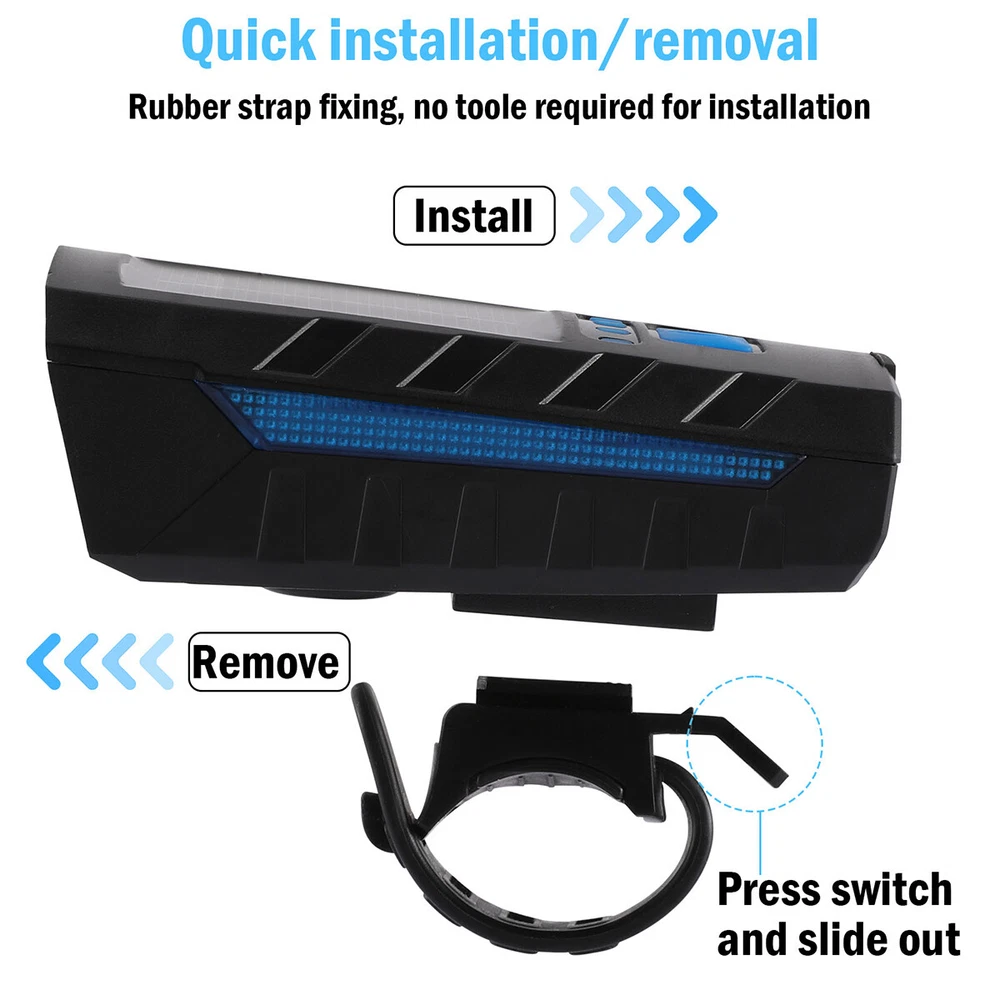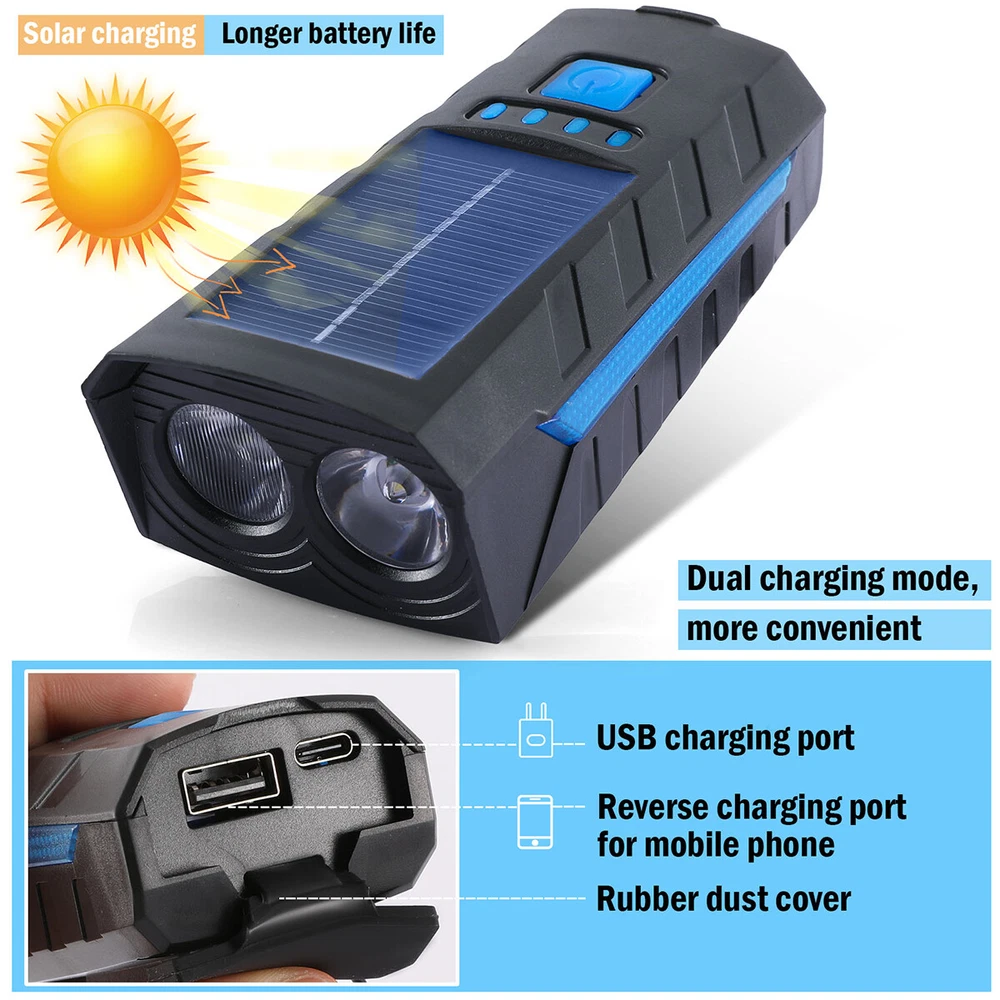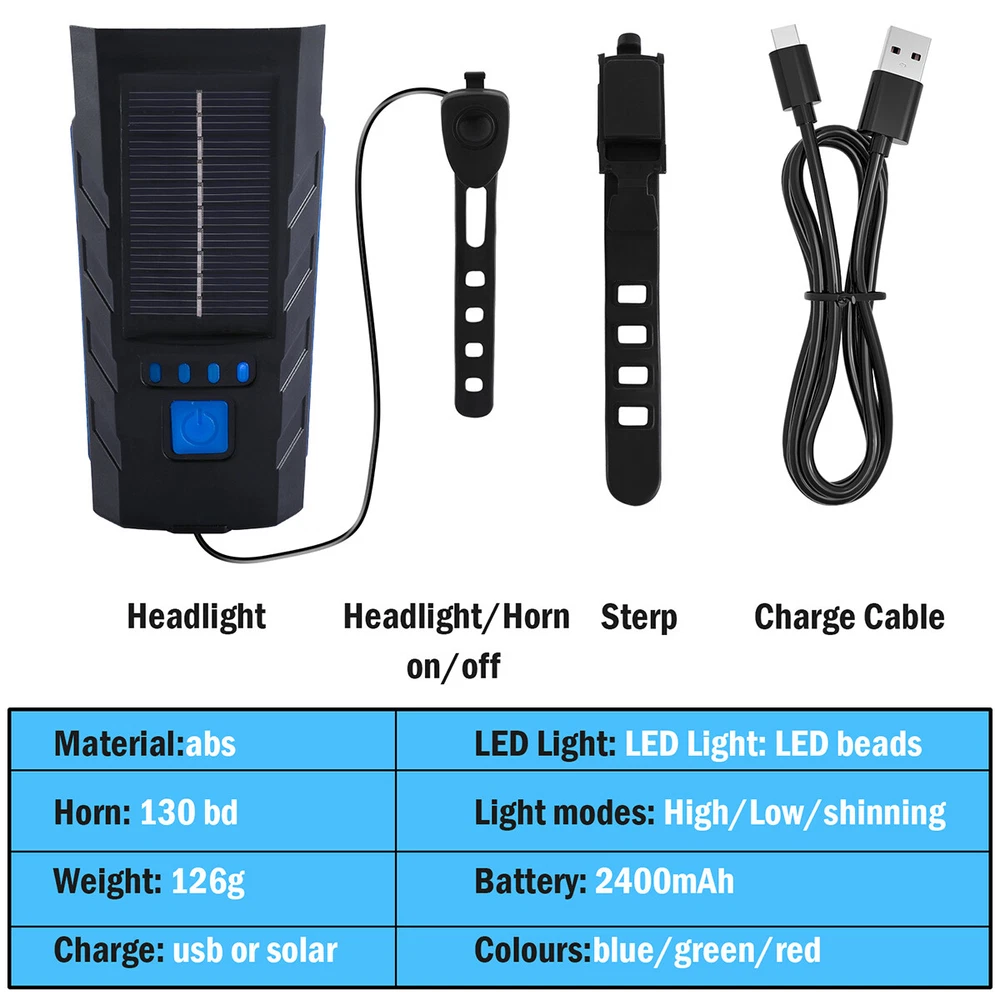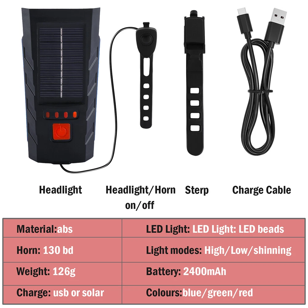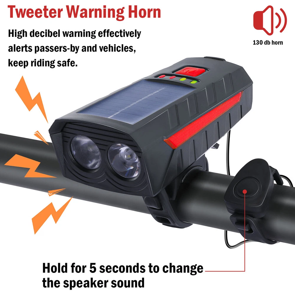 Solar Bicycle Headlight Horn Night Riding USB Charging Flashlight with 3 Modes Solar Bicycle Headlight Horn Night Riding USB Charging Flashlight with 3 Modes 100% Brand New & Excellent quality Free & fast shipping, with tracking number provided Feature: 1.Charging and Discharging in One: The Bicycle Headlight can be charged by USB or solar power, and at the same time, it can be reversed to charge your cell phone. 2.High-Pitched Warning Horn: The horn of the Bicycle Headlight has a volume of up to 130 decibels, which can effectively remind the passers-by and ensure the riding safety. 3.High Brightness Beads: The Bicycle Headlight adopts double LED high bright beads, the irradiation range is farther, see more clearly. 4.Three Light Modes: The Bicycle Headlight have 3 light modes, namely: strong gear, low light gear, flash gear, you can switch the light modes according to different road conditions. 5.Large Flood Angle: The Bicycle Headlight provides large flood angle illumination with a long irradiation distance, the longest range up to 200 meters. Specifications: Lamp Beads: LED Lamp Beads Speaker: 130dB Material: ABS Plastic Mode:High-Medium-Flashing Color: Red/Blue Battery: 2400mah Weight: 126g Size: 10.8x5.1x3.7cm/4.25x2.01x1.46in Package Include: 1 x Bicycle Headlight 1 x Charging Cable Feature: * High Brightness Light Beads: Bicycle Tail Light adopts high bright COB light beads, even light and strong penetration. * Seven Modes: The Bicycle Tail Light has 7 light modes, which are: white light always on, white light strong light, red and blue light flashing, blue and white and red alternating slow flashing, blue and white and red alternating fast flashing, blue light flashing, white light flashing. * Solar Charging: Bicycle Tail Light can be charged by solar energy, it can be charged when there is light, no need to connect the wires, to ensure constant power. * Intelligent Light-Sensitive Sensing: The Bicycle Tail Light’s light source can automatically detect the ambient light when it is turned on, and will not light up during the day, but will automatically light up when it enters the tunnel or dark night. * Strong Waterproof: The Bicycle Tail Light has IPX7 sealed waterproof, even in rainy weather. Specifications: Lamp Beads: High Brightness COB Lamp Beads Battery: Built-in Lithium Polymer Battery Mode: 7 Adjustable Modes Material: ABS Plastic Color: Black Size: 87x60x18.5mm/3.43x2.36x0.72in Package Include: 1 x Bicycle Tail Light 1 x Charging Cable 1 x Accessories Payment Shipment Return Feedback Contact us Payment * We Accept Payment via PAYPAL ONLY . * Payment Must be Made within 4 Days of Auction Closing. * Non-Payment may Result in a UPI (Unpaid Item) being Put on Your Account. eBay will Automatically Close Your Account if You Accumulate 4 UPI's total. * Please List Your Special Requests ( Color, Size, Packages, etc. ) in the PAYPAL NOTES SECTION when you make payment. Shipment * Shipping will be handled in 24 business hours after payment got. Ship to PayPal Address only , please confirm it before paying. * Please leave your phone number in the address in case there is an address problem. Return * Returns and Exchange accepted within 60 Days. * Refund will be given as Money Back. * Free Return shipping. * Before you return the defective item,please email us for the RMA, and we will reply you in 24 hours in working days. If you do not get reply please check if your mail box has refused our reply or not, then send to us again, thanks! Feedback If you are satisfied with the transaction please remember to leave us a positive feedback (5-Star) will be much appreciated. Please DO remember to contact us before leaving the neutral (3 stars) , negative feedback (1-2 stars) or opening a case/dispute if any problem caused by the item . Normally your email would get replied within 24 hours on working day and your issue would be followed up carefully until we've reached a consensus! We will try our best to solve the problem and leave you a happy shopping mood here. Thank you! We are not only selling good items, but also selling with excellent after-sale service and a strong sense of responsibility. We will always try our best to find you a satisfactory solution if any problem takes place! Contact us Email muchbuy-outlet at Paypal registered email or ebay message.