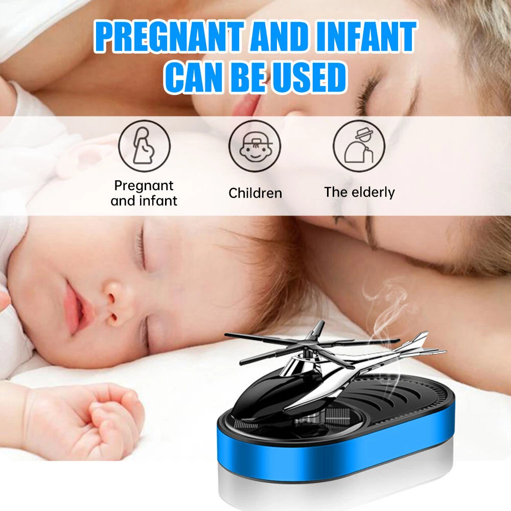 Features: 【Solar Power Generation&Energy Conservation】This solar powered car essential oil diffuser has a circular solar panel that can capture light from all directions. When it is illuminated by light, the propeller will instantly activate and rotate to emit fragrance. This car essential oil diffuser will automatically stop rotating on dimly lit cloudy days, but it will not affect the spread of fragrance at all【Relieve stress and stay alert】The work is simple and easy to carry. The fragrance around you keeps you alert while driving, gives you a relaxed journey, and brings you a good mood. Enjoy the fragrance of essential oils to the fullest.【Exquisite Appearance&Crafts】Designed as a helicopter model, made of aluminum alloy and plastic materials, it is not afraid of sun exposure, does not deform, and does not fade. Combining solar energy to convert sunlight into electrical energy, keeping the propeller rotating without the need for charging. Simplicity, fashion, and aesthetics showcase your unique taste.【Washable anti slip pad】The bottom is equipped with anti slip pads, so you can place it on the dashboard without easily slipping off. Can be repeatedly pasted, firmly pasted without leaving any traces. Anti slip pads can be repeatedly cleaned and reused.【Multi purpose】This solar powered car essential oil diffuser can be placed anywhere you like, such as your car, office, home, and more. Stay away from unpleasant odors and create a charming atmosphere. Specifications: Size: 11.5 centimeters/4.52 inches (length); 6.5 centimeters/2.56 inches (width); 5 centimeters (height) Materials: Aluminum alloy, plastic, solar panels Package List: 1 * Solar powered car air freshener 1 * Fragrant tablets Note: 1、This project does not include additional essential oils. After the fragrance of the product fades, you can drip your favorite essential oil. 2、Please note that this is a solar powered essential oil diffuser. The propeller will work under sunlight. Without sunlight, the propeller stops working. On Jan 31, 2025 at 17:03:17 PST, seller added the following information: