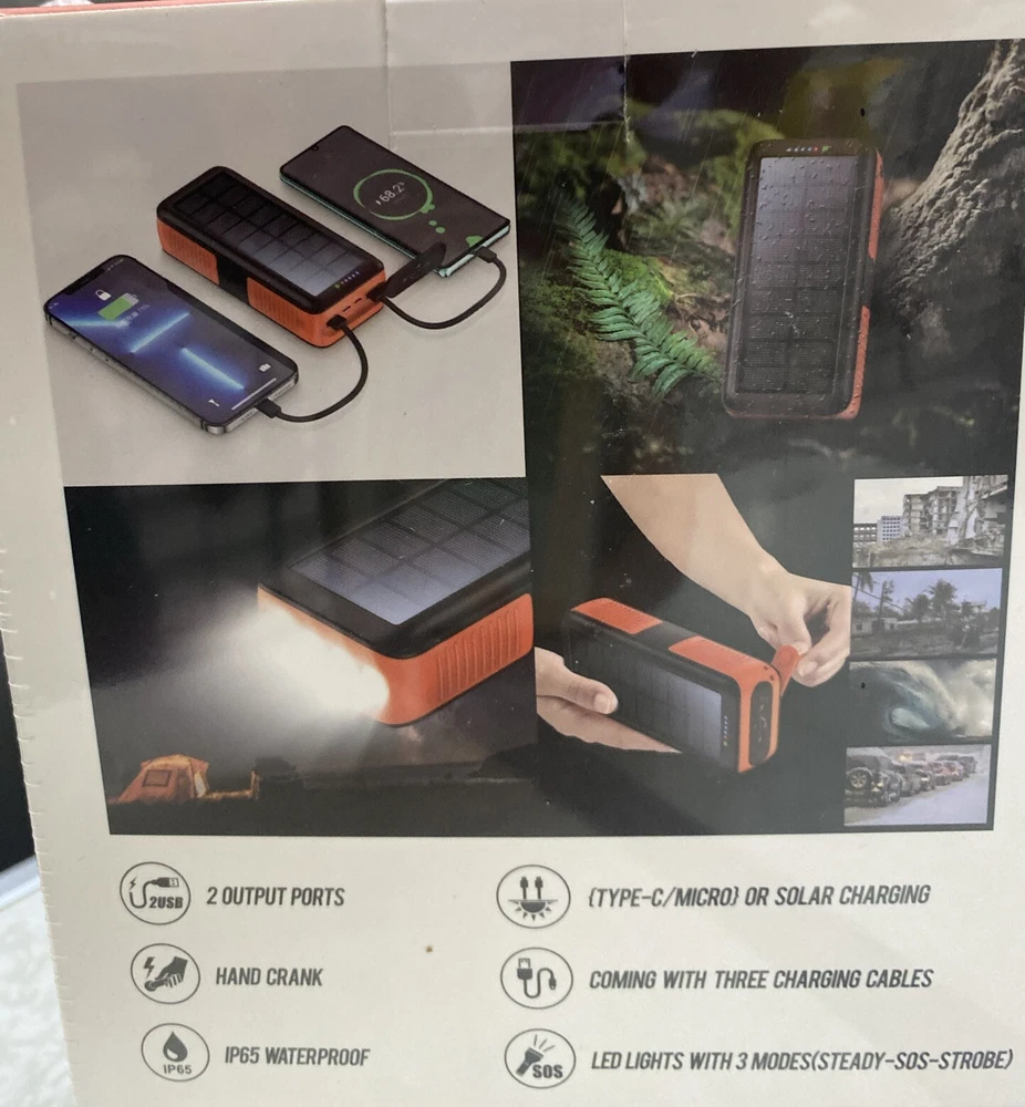 Solar Charger Power Bank 63200mAh Portable Charger with Dual Outputs & Dual Mint. Condition is New. Shipped with USPS Ground Advantage.