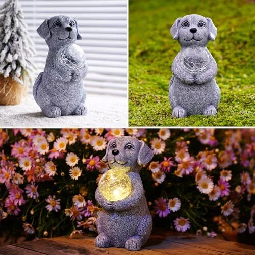 30 Days Return Policy Fast Delivery Trusted seller Solar Dog Garden Statues - 8.4 "Dog Decor with Gazing Ball Solar LED Lights, Unique Gifts for Mom Grandma Birthdays & Dog Lovers, Outdoor Decor for Outside Lawn Porch Patio (Gray) Product Description 】Exceptional Customer service】: Your satisfaction is our top priority. Should you encounter any issues with this product, feel free to reach out to our dedicated customer service team for prompt and satisfactory resolutions. Shop without worries 【Thoughtful Gift】: Being an embodiment of love for dogs, it makes for a heartfelt present for dog lovers, moms, and grandmas, adding a personal touch to your gift-giving. 【Embedded Solar LED】: This statue doubles as a lantern with its integrated solar-powered LED light. As dusk falls, it begins to glow, adding a mesmerizing illumination to your outdoor space. 【Perfect Size】: Standing at 8.4 inches, this piece is the perfect size to be noticeable without overpowering. It's a remarkable addition that's sure to draw the eye and bring joy to any passerby. 【Charming Aesthetic】: The " Solar Dog Garden Decor Statues" blends a playful canine shape with a captivating gazing ball, creating a unique piece that adds a whimsical touch to any garden setting. 【Versatile Usage】: Whether as a centerpiece in your garden, a heartening presence on your balcony, or a delightful surprise for a dog lover, this statue is as versatile as it is charming. Shipping Returns Payment Shipping Shipping is FREE to all addresses other than APO/PO boxes in the lower 48 states. All our stock ships from US-based warehouses. Shipped via USPS or UPS (depending on location and package weight) Unless stated otherwise, all orders will ship within 24-72 hours of your payment being processed. Check our feedback to see the great reviews of FAST shipping we offer. Returns As our valued customer, we will do our best to make sure the product you receive arrives to you on time and as expected. If you are not satisfied with your purchase, please contact us within 30 days of receiving your order to process a return. Payment We currently accept payment via eBay managed payments only. Once payment is cleared, we will dispatch your shipment within 1-3 business days. Please refer to the "Shipping" tab for more information regarding shipping speed to your destination.