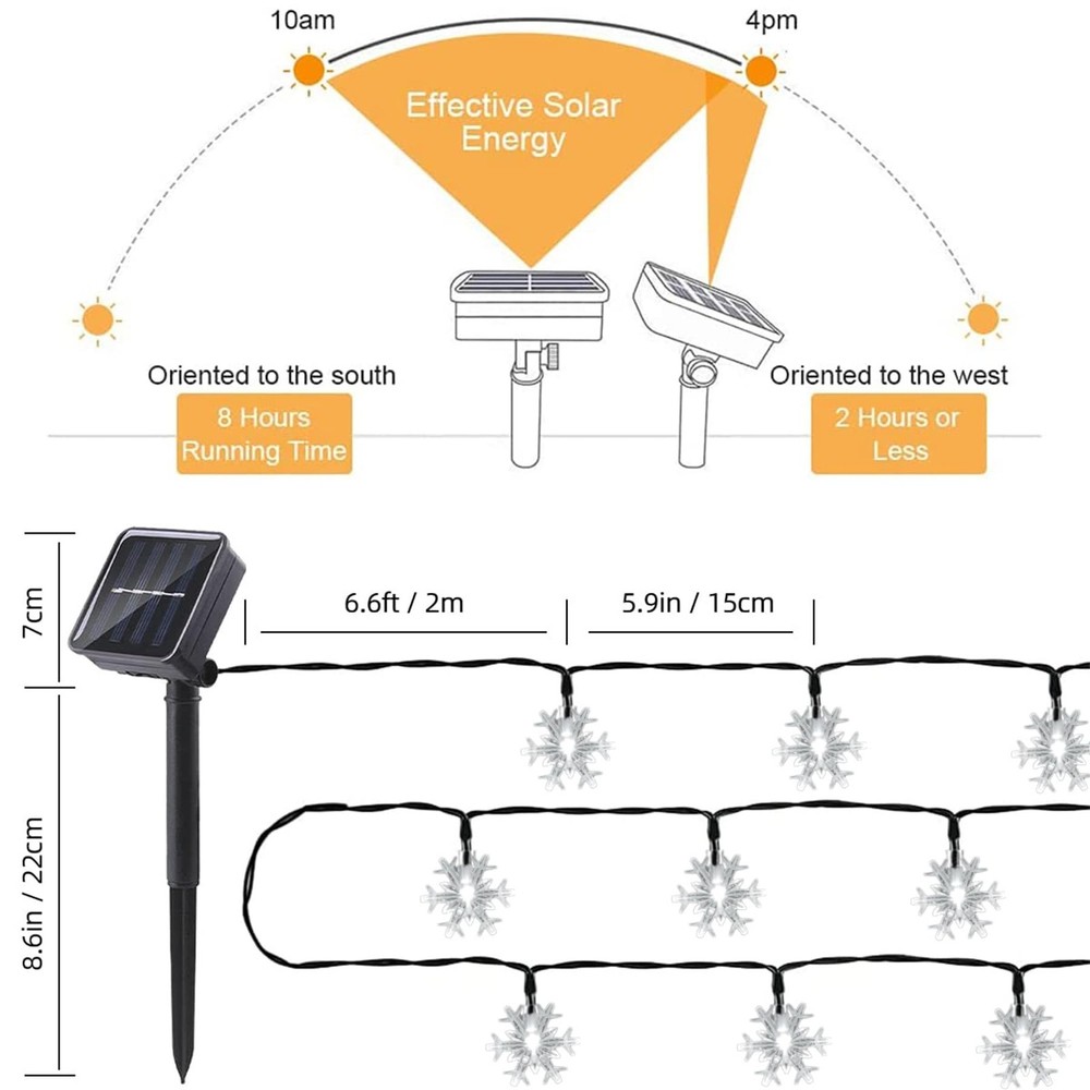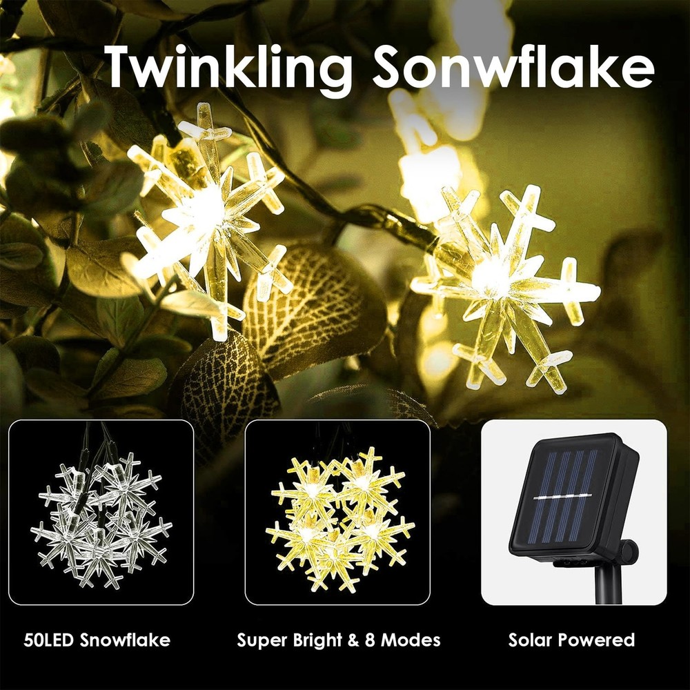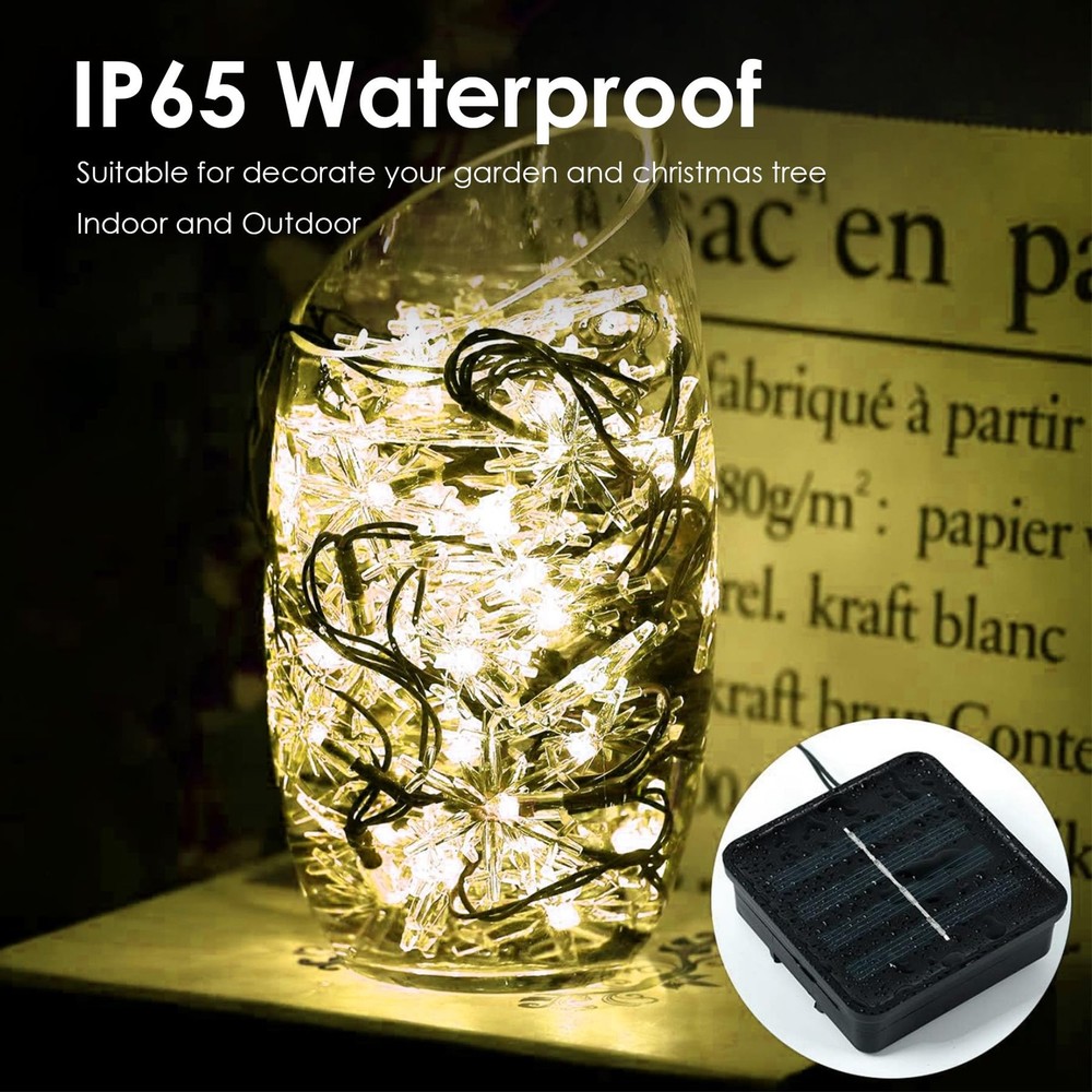 Solar String Lights Outdoor Waterproof 50LED Warm White 💡【IP65 Waterproof 】It can withstand all kinds of weather, including heavy rain and snow, perfect for indoor and outdoor decorations. The outdoor string lights build-in memory chip save your last modes setting and no need to reset mode every day. 💡【High quality LED Bulbs】The solar string lights has 100 bright led, fairy lights solar powered. 💡【 FULLY UPGRADED SOLAR STRING LIGHTS】Which saves enough solar energy in the daytime, the string lights can automatically work for 8 to10 hours at night. 💡【Perfect Indoor & Outdoor Decor】Solar string lights emit colorful light, bringing you dreamlike beauty, perfect match with Christmas tree and garden fence, fantastic decoration for holiday, garden, patio, yard, wedding, party, tent, gazebo, etc. 💡【Quality Assurance】We will give you a satisfactory answer within 12h.
