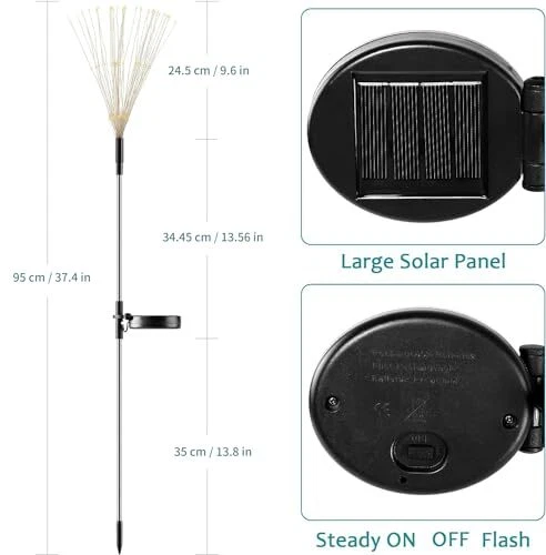 30 Days Return Policy Fast Delivery Trusted seller Solar Firework Lights, 2 Pack 120 LEDs 2 Lighting Modes Outdoor Waterproof for Garden Patio Walkway Pathway Party Wedding Christmas Decorative - Cool White Product Description 【Creative Solar Garden Lights】2 Pack, Each stake has 120 LEDs distribution in 40 branches copper wire, 2 lighting modes ( twinkling / steady on). Solar firework light is made of flexible copper wire with bright LED beads, and you can bend any shape you want to decorate pathway yards garden patio 【Waterproof Solar Outdoor Lights】This solar lights equiped with upgraded solar panels and can last 8-10 hours after fully charging. IP65 waterproof for outdoor use, can hold any bad weather 【DIY Any Shape】 With flexible copper wire, you can DIY any shape, such as fireworks, flowers, heart, spiral, spherical. These solar string lights will brings you unlimited surprises 【Easy to Install】No wiring and no electricity cost, just insert the lights stake and turn on the switch, solar lights will light up automatically at night and charding during the day 【Note】1. Ensure the button is in the “ON” position before using. 2. Recommend to turn on the switch and charging in the sun before use since the lights has not fully charged when you received. 3. If you have any questions about solar lights, please contact us and we will solve it within 24 hours Shipping Returns Payment Shipping Shipping is FREE to all addresses other than APO/PO boxes in the lower 48 states. All our stock ships from US-based warehouses. Shipped via USPS or UPS (depending on location and package weight) Unless stated otherwise, all orders will ship within 24-72 hours of your payment being processed. Check our feedback to see the great reviews of FAST shipping we offer. Returns As our valued customer, we will do our best to make sure the product you receive arrives to you on time and as expected. If you are not satisfied with your purchase, please contact us within 30 days of receiving your order to process a return. Payment We currently accept payment via eBay managed payments only. Once payment is cleared, we will dispatch your shipment within 1-3 business days. Please refer to the "Shipping" tab for more information regarding shipping speed to your destination.