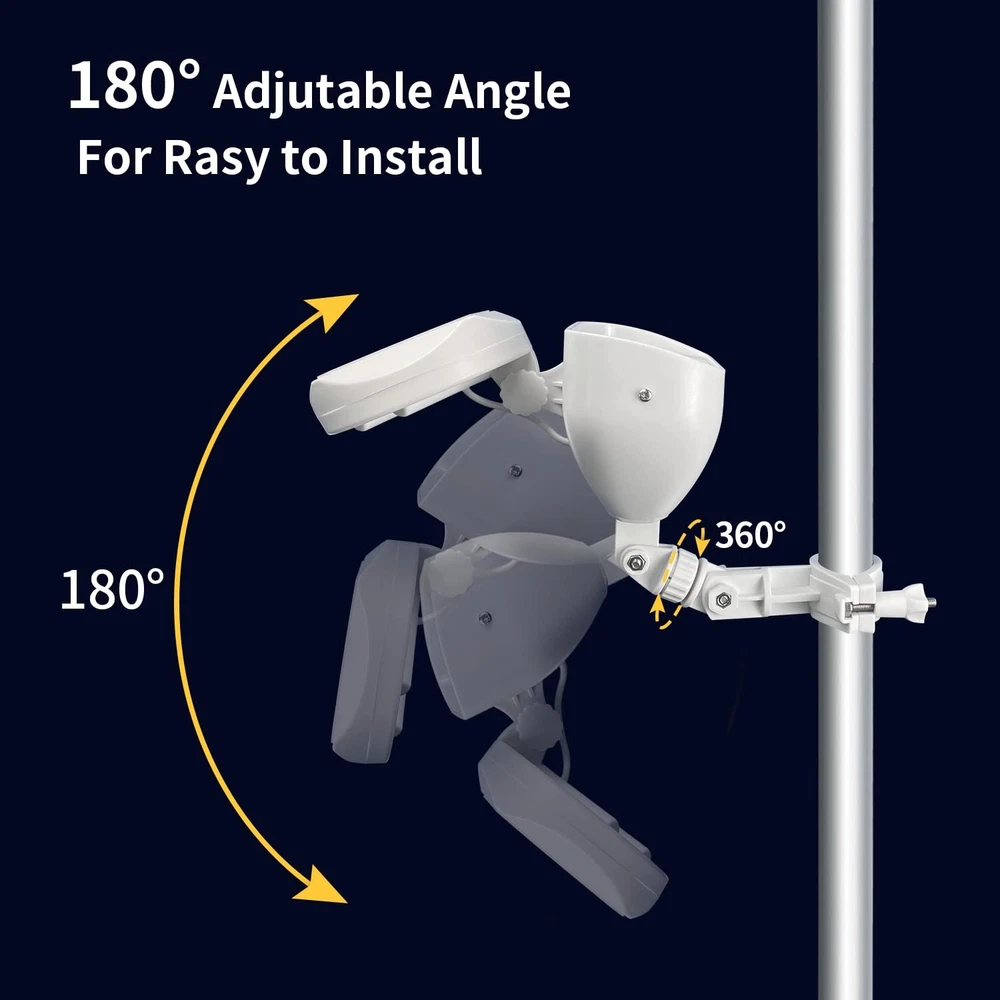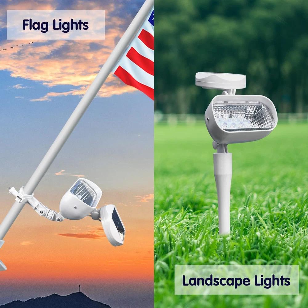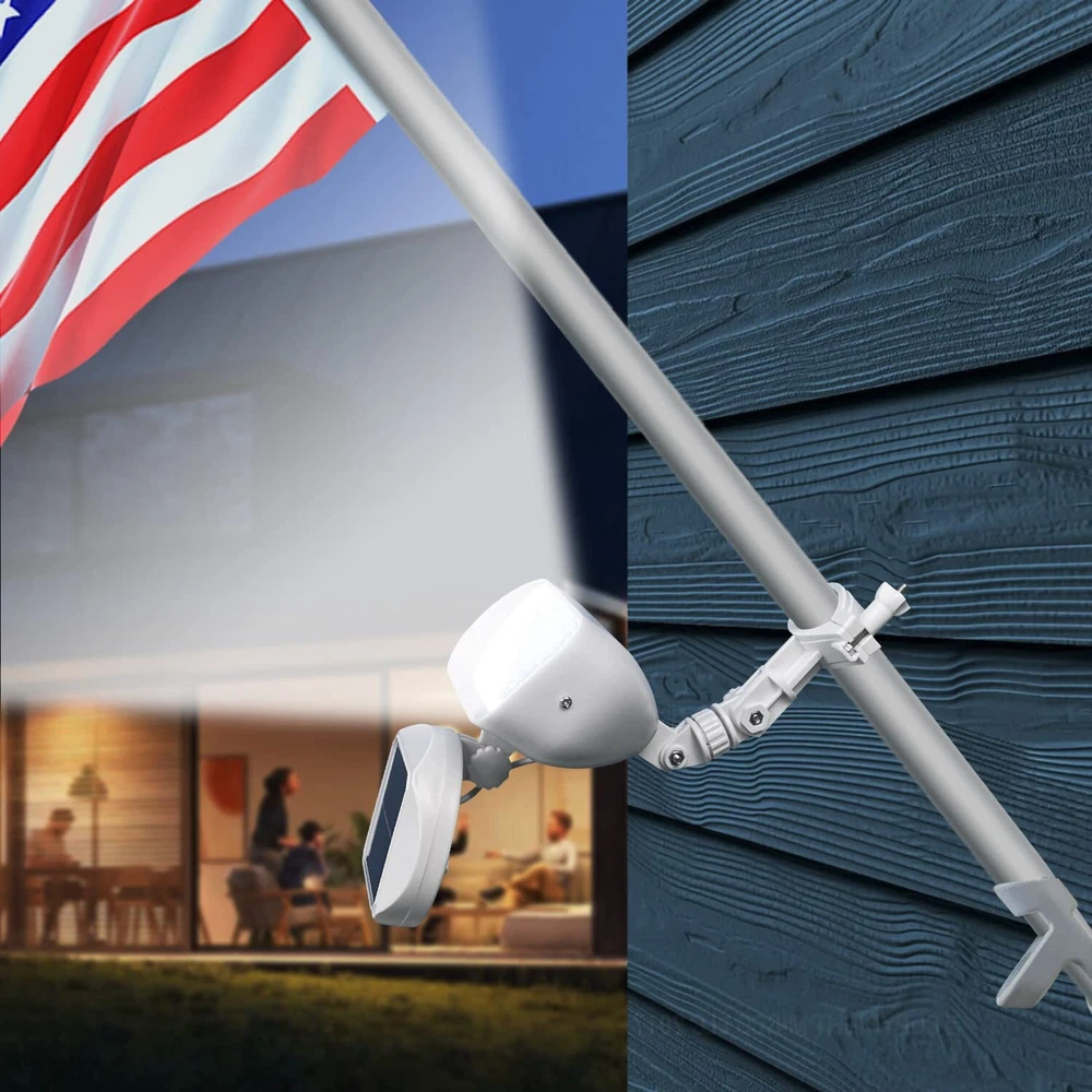 360° Adjust the light angle to illuminate the perfect spot. It can light about 2 to 3 meters ( about 6-10FT). Put solar panel face towards the sunlight directly, charged by sunlight during daytime. With the advanced sensor design, just turn on the light through the "ON / OFF" button before installation. The weatherproof light automatically turns on at dusk and off at dawn, for hassle-free performance Easy essemble, fit for all 1-1.5’’ Spinning Flag pole. Flagpole mounting employs brackets to install a solar light directly to the pole. This allows the light to point up toward the flag. To install, place the brackets on either side of the flagpole and fasten them together to form a tight grip on the flagpole Solar light is perfect for lighting your flag or brightening up the exterior of your home. The light is composed of 4x0.5W bright LEDs, boasts a bright light output of 240 lumens, ensuring that the flag and the flagpole are clearly illuminated. When the light is fully charged, it can operate continuously for up to 12 hours To show your patriotism 24/7. The flagpole light will gather energy from the sun all day to help ensure that your flag is lit through fog, gloom, and the darkest hours of the night. There are no batteries to change and no risk of losing the light should the power go out. The solar flagpole light is made of durable material capable of withstanding heavy storms without damage 1 year after-sale technical support and 100% ensures this will quickly become your favorite no-risk purchase. Simply us if you have any problems when use !