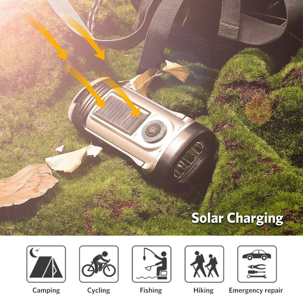 Solar Flashlight Hand Crank Solar Powered Rechargeable Flashlight IPX6 Waterproo