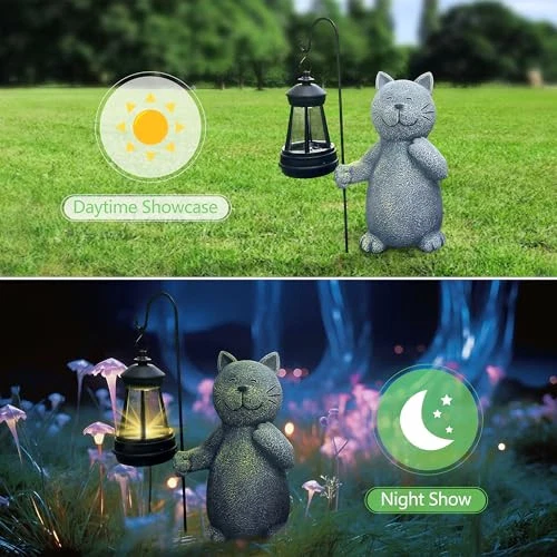 30 Days Return Policy Fast Delivery Trusted seller Solar Garden Decor Statues Figurine: Garden Art for Patio Balcony Yard Lawn - Unique Christmas Birthdays Gifts for Mom Grandma Women Wife Sister Product Description 【Perfect after-sales service 】 If you have any questions or opinions about the resin cat statue of the sun lamp, please feel free to communicate with our customer service at any time. We will provide you with satisfactory after-sales service within 12 hours. We provide a 90 day replacement or risk-free refund warranty for every cat enthusiast. 【 Exquisite Design 】 This smiling cat is holding a solar lantern in its right hand and chin in its left hand. Its fingers are lifelike and its beard is visible, making it extremely cute. Suitable for various indoor or outdoor scenes. The size of this solar powered cat resin statue is 5X5X10 inches. 【Versatile Placement】: Suitable for patios, balconies, yards, and lawns, this garden art piece can be placed anyw to enhance your outdoor decor.Solar-powered garden statue featuring an adorable cat figurine design, perfect for adding a touch of charm to your outdoor spaces. 【The Best Choice for Home Garden Decoration Gifts】This solar powered statue cat is not only a great gift for various occasions, such as birthday, Christmas, Mother's Day, or Father's Day, but also a perfect choice for occasions such as Easter, Thanksgiving, weddings, Valentine's Day, New Year, and graduation ceremonies. It is a warm and perfect choice.. It can even be given to cat enthusiasts, animal enthusiasts, your friends and family. 【Low Maintenance and Illuminating】: Powered by solar energy, this garden statue requires no wiring or electricity, making it an eco-friendly and hassle-free addition to your outdoor space.The integrated solar lantern provides warm, ambient lighting at night, creating a cozy and inviting atmosp Shipping Returns Payment Shipping Shipping is FREE to all addresses other than APO/PO boxes in the lower 48 states. All our stock ships from US-based warehouses. Shipped via USPS or UPS (depending on location and package weight) Unless stated otherwise, all orders will ship within 24-72 hours of your payment being processed. Check our feedback to see the great reviews of FAST shipping we offer. Returns As our valued customer, we will do our best to make sure the product you receive arrives to you on time and as expected. If you are not satisfied with your purchase, please contact us within 30 days of receiving your order to process a return. Payment We currently accept payment via eBay managed payments only. Once payment is cleared, we will dispatch your shipment within 1-3 business days. Please refer to the "Shipping" tab for more information regarding shipping speed to your destination.