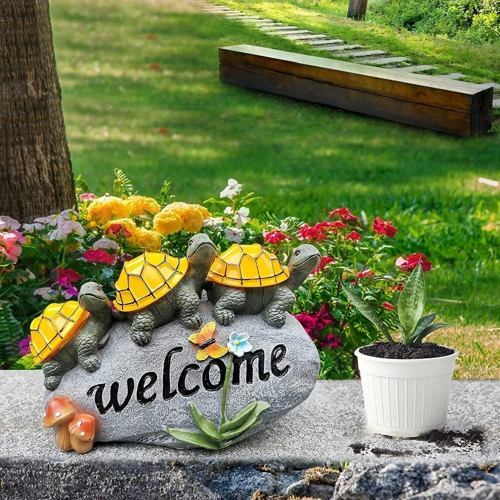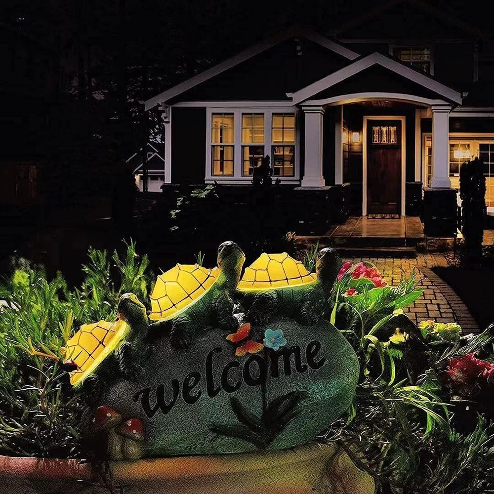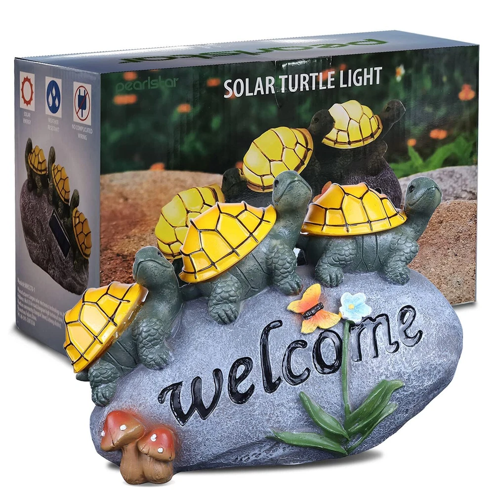 đ˘ăAdd an ecological touch to your Fall gardenăEvery garden statue and figurine is made of long-lasting resin and coated with UV-resistant paint. Making it solid and lasting. The garden turtles decorations to welcome guests onto your gardenălawn ă yard ă pond during the Thanksgiving Christmas and illuminate at night with fairy-tale colors. đ˘ăEnergy Efficiencyă100% solar-powered. Turn on the power switch before use, solar Turtles statue will automatically charge and energy during the day, and at night (in the dark) the Garden Turtles will light up automatically (warm light) to illuminate your Fall garden, which will save you time and electricity bills. đ˘ăHigh-Quality & Waterproof Materialsă Finished with a resistant ip44 coating, this solar garden decorations is built to withstand all types of weather conditions. Color fading, water and frost neednât be a concern with this durable resin, outdoor Fall garden decor. It is sure to brighten up your Outdoor GardenăyardăLawnăpondăpatio. đ˘ăWarm GiftsăSize: 9.8 "L x 6.3" W x 3.9" H. The garden dĂŠcor figurines is of the best garden gifts you can give. This lawn ornament is a perfect gift for your family and friends for Thanksgiving Christmas holiday,birthdays, weddings and housewarming. This charming outdoor statue will also add charm to your garden and lawn decor. Light up the fairy tale world. đ˘ă180 DAYS FREE ă We want you to love this addition to your garden and home decor. If for some reason you are not completely satisfied, we offer refunds and returns.180 days Free .