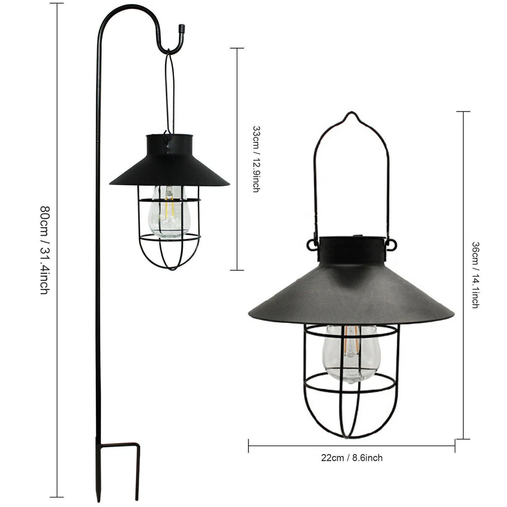 Power Source: Solar Power Light Color: Warm White Theme: Beach, Garden, Halloween, Holidays & Christmas, Jungle, Streets & Road Maps Size: Medium Control Style: Knob Control Style: Vintage/Retro Brand: Unbranded Installation Area: Outdoor Features: Energy Saving, Waterproof Color: Black Sensor Type: Light Mounting: Corner, Wall Mounted Type: Hanging Light Number of Lights: 1 Lighting Technology: LED