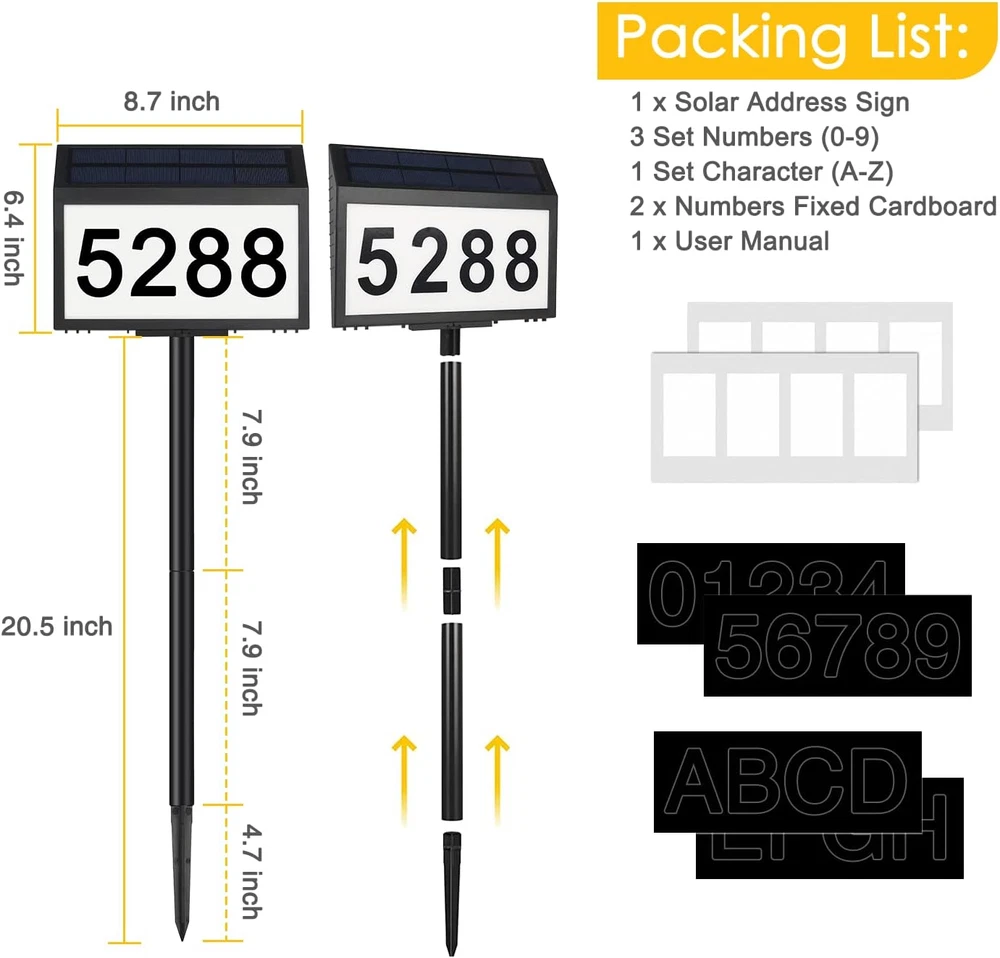 Solar House Numbers for outside Light Up, LED Illuminated Home Number Address Si