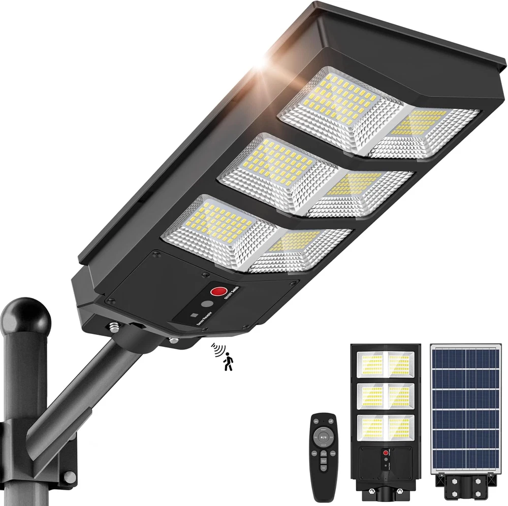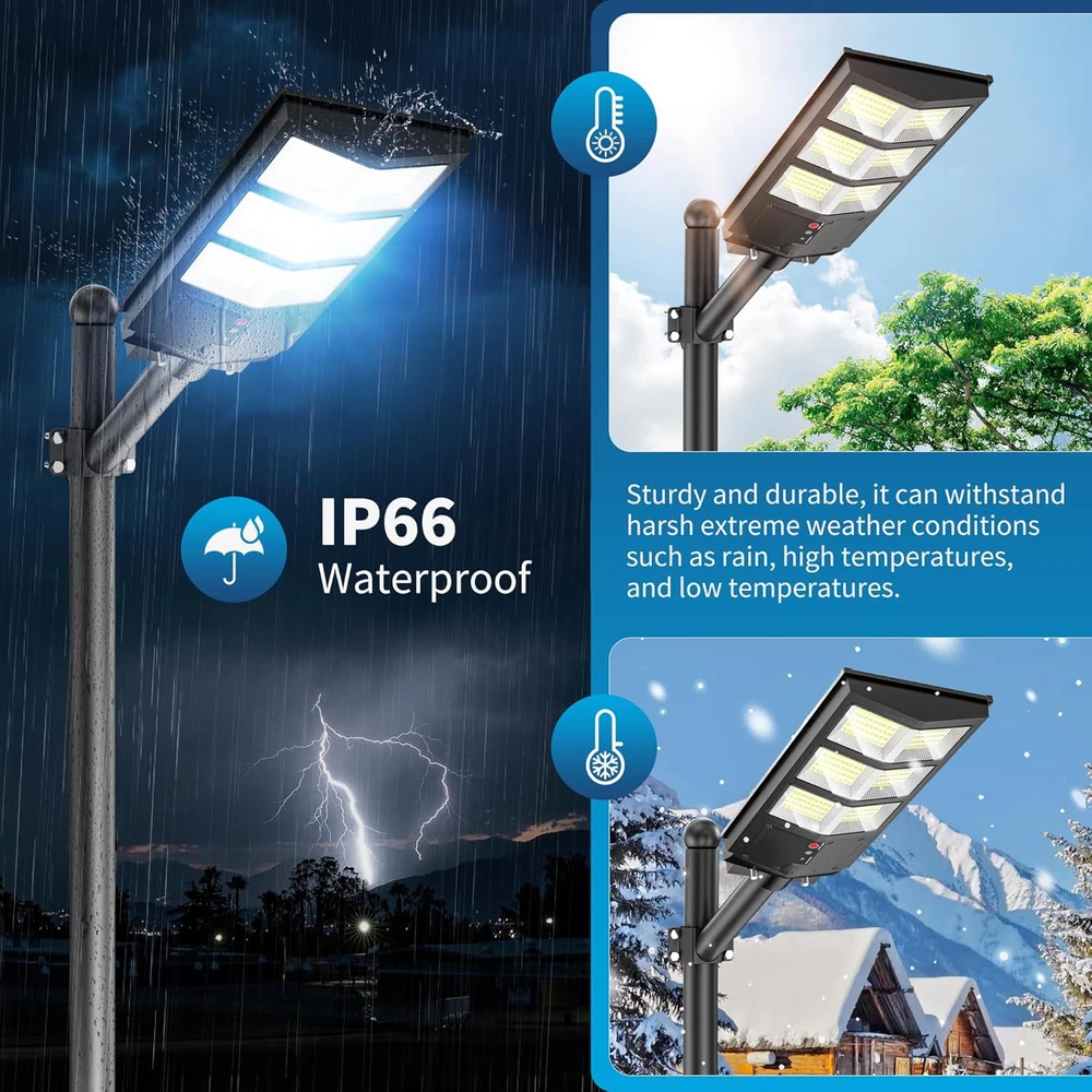 [ULTRA BRIGHT AND WIDE ILLUMINATION RANGE] The OKPRO solar street light features a 220° wide angle, covering a larger area with its 270 super-bright 5730 LED beads, illuminating up to 600 square feet for optimal lighting effect. This solar flood light ensures maximum brightness and coverage. [HIGH-QUALITY SOLAR PANEL FOR ZERO ELECTRICITY COST ALL YEAR ROUND] The street lights solar powered features a newly upgraded 6V/5W polycrystalline silicon solar panel, significantly improving the photoelectric conversion rate. No wiring is needed as the solar panel charges with solar energy, ensuring environmentally friendly operation with zero electricity cost all year round. It takes about 6-8 hours to fully charge, providing 10-12 hours of usage on a full charge. [EQUIPPED WITH MOTION SENSOR AND TIMER SETTINGS] Mode 1: 100% brightness when motion is detected, 30% brightness when no motion is detected.Mode 2: 100% brightness when motion is detected, off when no motion is detected.Timer Settings:1-hour sensor / 2-hour sensor / 3-hour sensor / 5-hour sensor: After the set time, the light switches to sensor mode 1. 4-hour mode: The light turns off automatically after the set time. Multiple intelligent control modes enhance the versatility of these solar motion lights outdoor. [EASY INSTALLATION AND IP66 WATERPROOF] Our solar parking lot lights comes with all necessary installation accessories and requires no wiring. Simply fix the base where you want to install it. The solar street lights outdoor waterproof are suitable for patios, parking lots, garages, gardens, pathways, streets, and yards, meeting diverse lighting needs effortlessly. With an IP66 waterproof rating and made from high-quality ABS and die-cast aluminum bracket, it is sturdy and durable, capable of withstanding rain, high temperatures, low temperatures, and other extreme weather conditions. [EXECELLENT AFTER-SALES SERVICE] OKPRO solar street lights offer a two-year after-sales service. If you need any further assistance, please contact us through the Amazon platform, and we will provide a satisfactory solution within 24 hours. Product Description