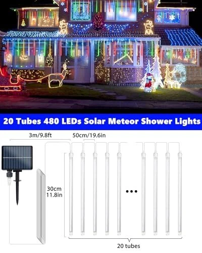 Menu 1. We require immediate payment. 2. We currently accept payment via eBay managed payments only. 3. Once payment is cleared, we will dispatch your shipment within 1-3 business days. Please refer to the "Shipping" tab for more information regarding shipping speed to your destination. Solar Meteor Shower Rain Lights, 11.8 inches 20 Tubes 480 LED Cascading LED Icicle Lights, Waterproof Solar Icecycle Falling Raindrop Lights for Holiday Party Wedding Christmas Decorations Product description Solar Powered Meteor Shower Lights: These meteor shower icicle lights are powered by solar energy, eliminating the need for extra electricity costs and battery replacement. The built-in light sensor automatically turns the lights on at dusk and off during the daytime Auto On/Off and Waterproof: The solar powered falling raindrop lights can work for 8-10 hours or more after absorbing sunlight for 6-8 hours. Designed to withstand all weather conditions, these lights are waterproof for long-lasting use Versatile Christmas Decoration Lights: Featuring 20 tubes, each tube 11.8 inches, the total length of the string is 33ft. These solar icicle lights are perfect for any occasion. Decorate trees along streets, parks, and rivers or hang them along the roof. They are also great for home decor, birthday parties, holidays, and festivals. Ideal for use in patios, yards, gardens, and shopping malls Romantic Meteor Shower Rain Lights: These Icicle string lights feature every bulbs that turns on and off one by one in sequence and quickly, creating a dynamic and cascading effect that resembles a meteor shower or falling raindrop in the night sky Easy Installation: No wiring or additional tools required, installation of these solar raindrop lights is a breeze. Simply connect the included parts and stake the string lights into the ground. No matter you want to decorate any scene or create any festive atmosp, this product will be your ideal choice PLEASE MESSAGE US IF YOU HAVE ANY OTHER QUESTIONS, AND MANY THANKS FOR READING ALL OF THIS. Copyright ©#. All Rights Reserved.