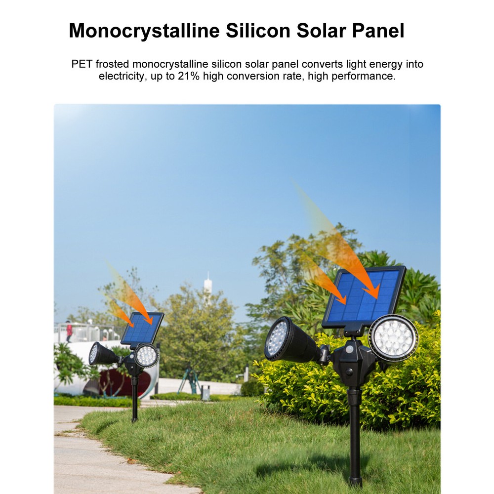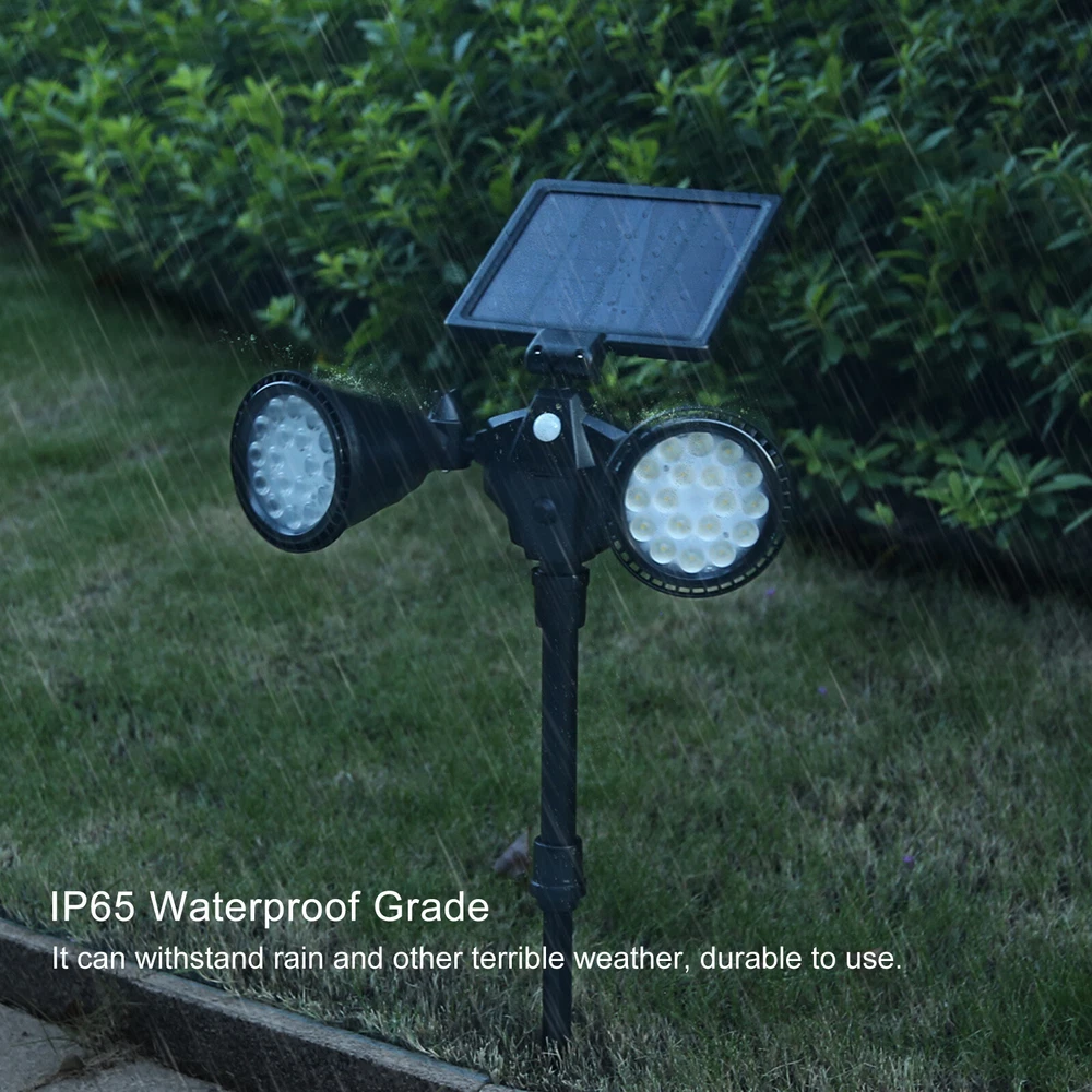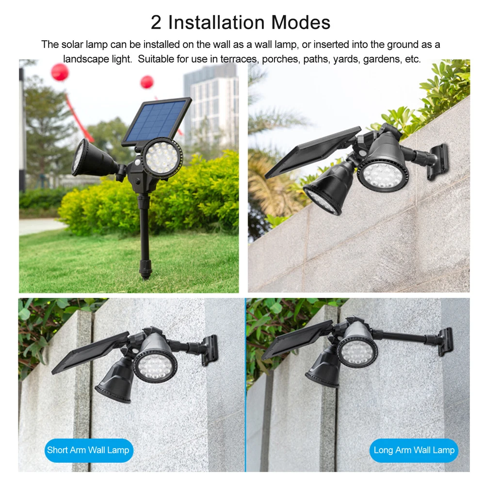 Overview: Suitable to use in the garden, patio yard, deck garage, fence, and courtyard, etc. With zero electricity charge the whole year. Let it light up your way home. Features: Monocrystalline Silicon Solar Panel: PET frosted monocrystalline silicon solar panel converts light energy into electricity, up to 21% high conversion rate, high performance. Intelligent Light Control: The solar garden wall light will automatically turn on at night and turn off at dawn, convenient to use. The angle of solar panel and 2 lamp heads can be adjusted freely, making the use more flexible and convenient. PIR Motion Sensor: When people come close about 10 meters (sensing range 150°), it will burst a bright light, and back to dim light or off after people leaves. 2 Installation Modes: The solar lamp can be installed on the wall as a wall lamp, or inserted into the ground as a landscape light. Suitable for use in terraces, porches, paths, yards, gardens, etc. Long Working Time: Supports about 10 hours of working time with a full charge. Make sure the charging time is no less than 6 hours. Outdoor Use: Made of high strength stainless steel, ABS and PC, IP65 waterproof grade, it can withstand rain and other terrible weather, durable to use. 4 Working Modes: 1. It will auto turn on dim light at night. When people come close about 10 meters, it will turn on bright light and then back to dim light after people leaves. 2. During the night, it will auto turn on when sensing human movement. When people walk out of its sensing range, it will turn off. 3. Auto turn on during the night time or in the dark area (high brightness) for 4 hours, and auto-off during the day time or in bright area. 4. Auto turn on during the night time or in the dark area (medium brightness) for 8-10 hours, and auto-off during the day time or in bright area. Specifications: Solar Panel: 6V 3W monocrystalline silicon solar panel Battery Capacity: 3.7V 5200mAh Charging Time: about 6 hours Working Hours: about 10 hours Light Source: 36pcs high brightness 2835 light beads Light Color: White Light (6500K), Warm Light (3000K) Optional Induction Mode: Light induction + human body induction Switch: Button switch Waterproof Grade: IP65 Color: Black Material: ABS, PC Each Item Size: 74.5*17.0cm/29.33*6.69in Each Item Weight: 810g/28.57oz Package List: 39.0*12.5*12.0cm/15.35*4.92*4.72in Package Weight: 1170g/41.27oz Package List: 1 * Solar Lamp 1 * Mounting Accessories